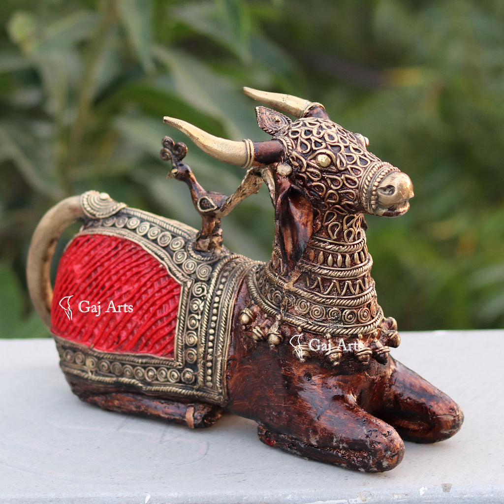 • Dhokra Craft Nandi An elegant and unique curio with a raw, rustic appeal to enhance your decor. Dhokra is a beautiful, ancient craft and amongst the oldest traditional techniques of metal casting in India, practiced for over 4,000 years. The lost wax technique, cire perdue is the medium of metalworkers in Madhya Pradesh, Chhattisgarh, Orissa and West Bengal. This craft dates back to pre-historic times of the Harappa and Mohenjodaro Civilizations. Entirely handcrafted, the unique 13 stage process of Dhokra/ Nandi   metal making is an outcome of the original craft instinct handed down through the centuries. Dhokra/ Nandi  metal is an alloy of brass, nickel and zinc that gives an antique effect to the castings.