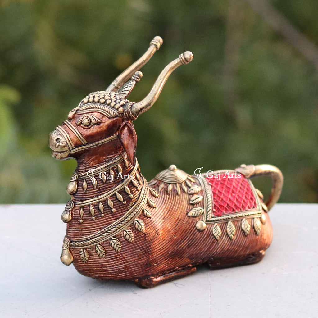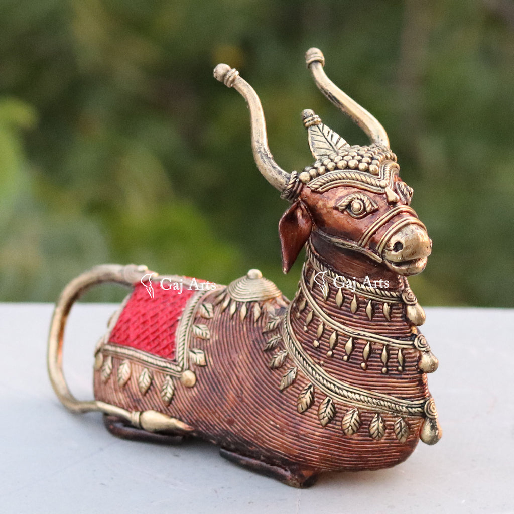 Dhokra Craft Nandi An elegant and unique curio with a raw, rustic appeal to enhance your decor. Dhokra is a beautiful, ancient craft and amongst the oldest traditional techniques of metal casting in India, practiced for over 4,000 years. The lost wax technique, cire perdue is the medium of metalworkers in Madhya Pradesh, Chhattisgarh, Orissa and West Bengal. This craft dates back to pre-historic times of the Harappa and Mohenjodaro Civilizations. Entirely handcrafted, the unique 13 stage process of Dhokra/ Nandi metal making is an outcome of the original craft instinct handed down through the centuries. Dhokra/ Nandi metal is an alloy of brass, nickel and zinc that gives an antique effect to the castings.