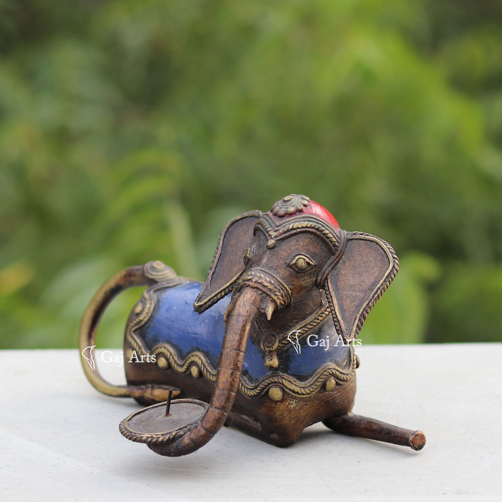 This Diya stand comes with a traditional design & it is very appealing and Eye Catching. Beautiful Diya mounted on the auspicious elephant's back makes it the perfect choice for Diwali or festival decoration. Its traditional look makes it a great gifting option on any occasion like Diwali, new home puja, house-warming, anniversary, etc. This product is cast in pure brass metal and polished by natural colors by the tribal artists of Chhattisgarh [dhokra craft from Chhattisgarh]. Please note : Due to various types of lighting and flash used while photo shoots, the color shade of the product may vary. The products are made in dhokra art by hand by the tribal artists of Chhattisgarh. Dhokra craft is a casting technique using age-old wax-casting. Hence, the product might have some black/dull patches, which is a symbol of handcrafted dhokra art.