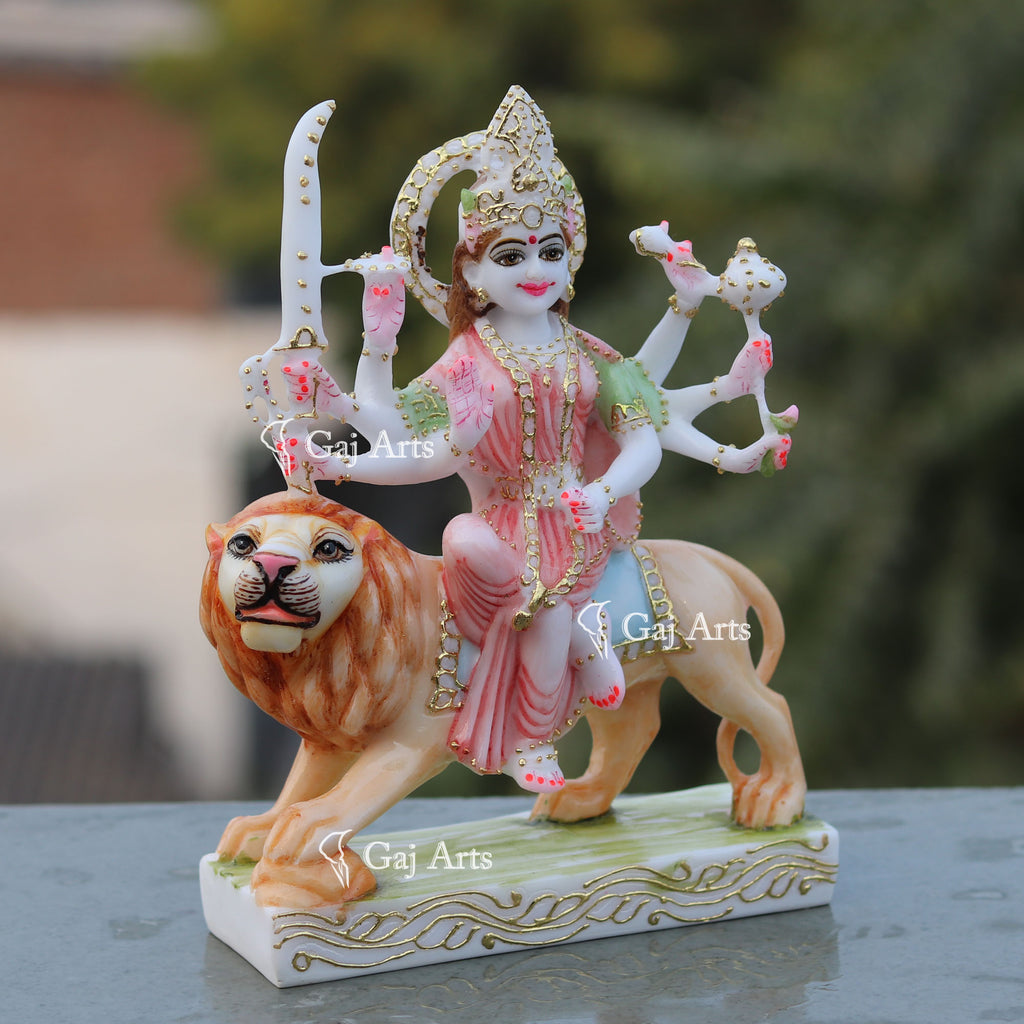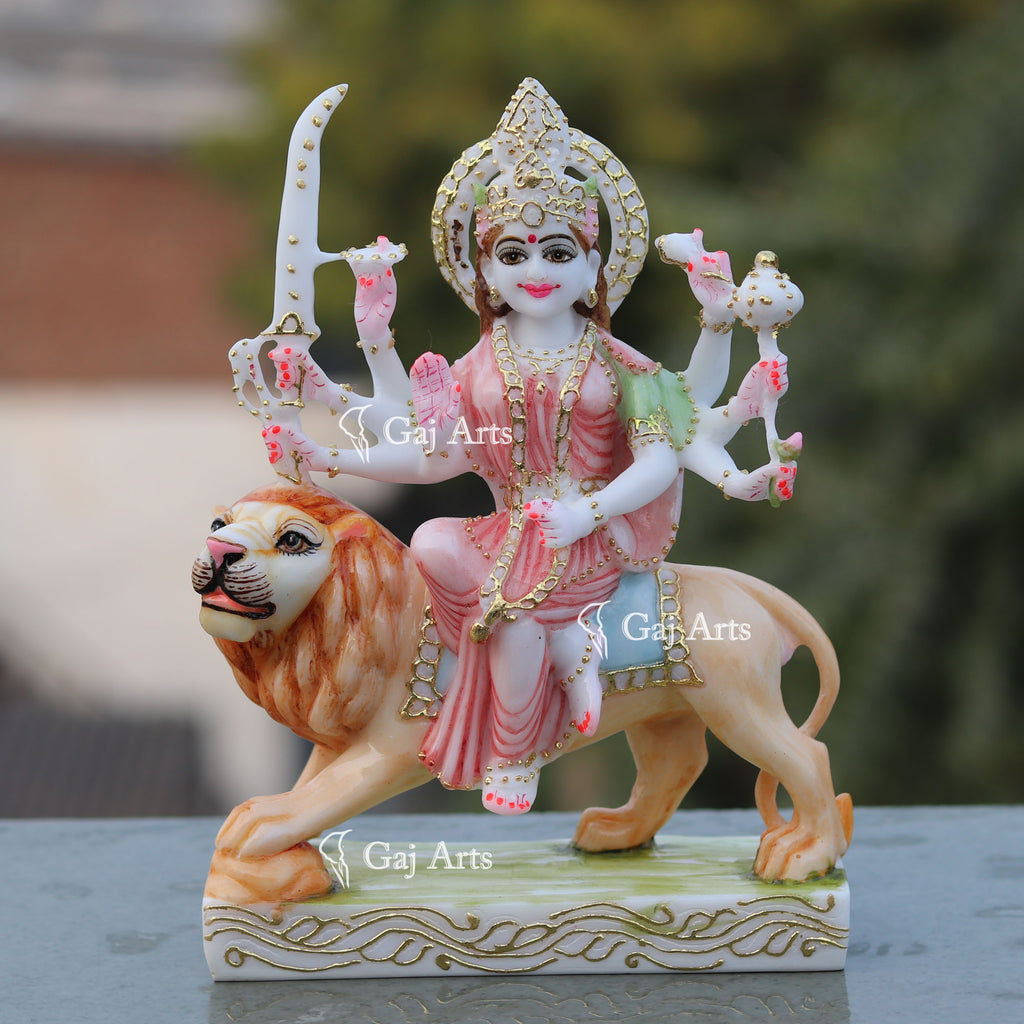 • Durga Mata is hand carved from one piece of  White  Marble Ethiopia
