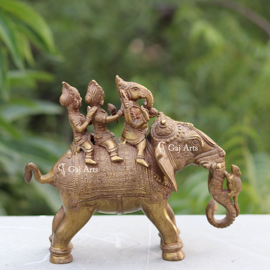 - The Elephant trunk is down. On elephant back Riddhi Siddhi & Ganpati seated. Rat on elephant trunk. These artifacts will enhance the beauty of the interior decor, is a great item for gifting purpose, a unique Artifact for Art Lovers & can be a great marvel of attraction for your living rooms.