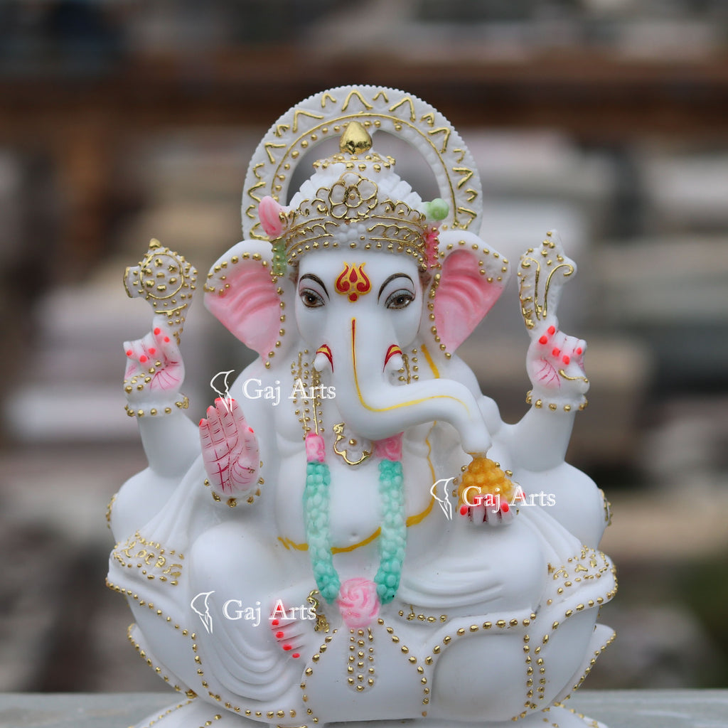- Ganesh is hand carved from one piece of White Marble Ethiopia