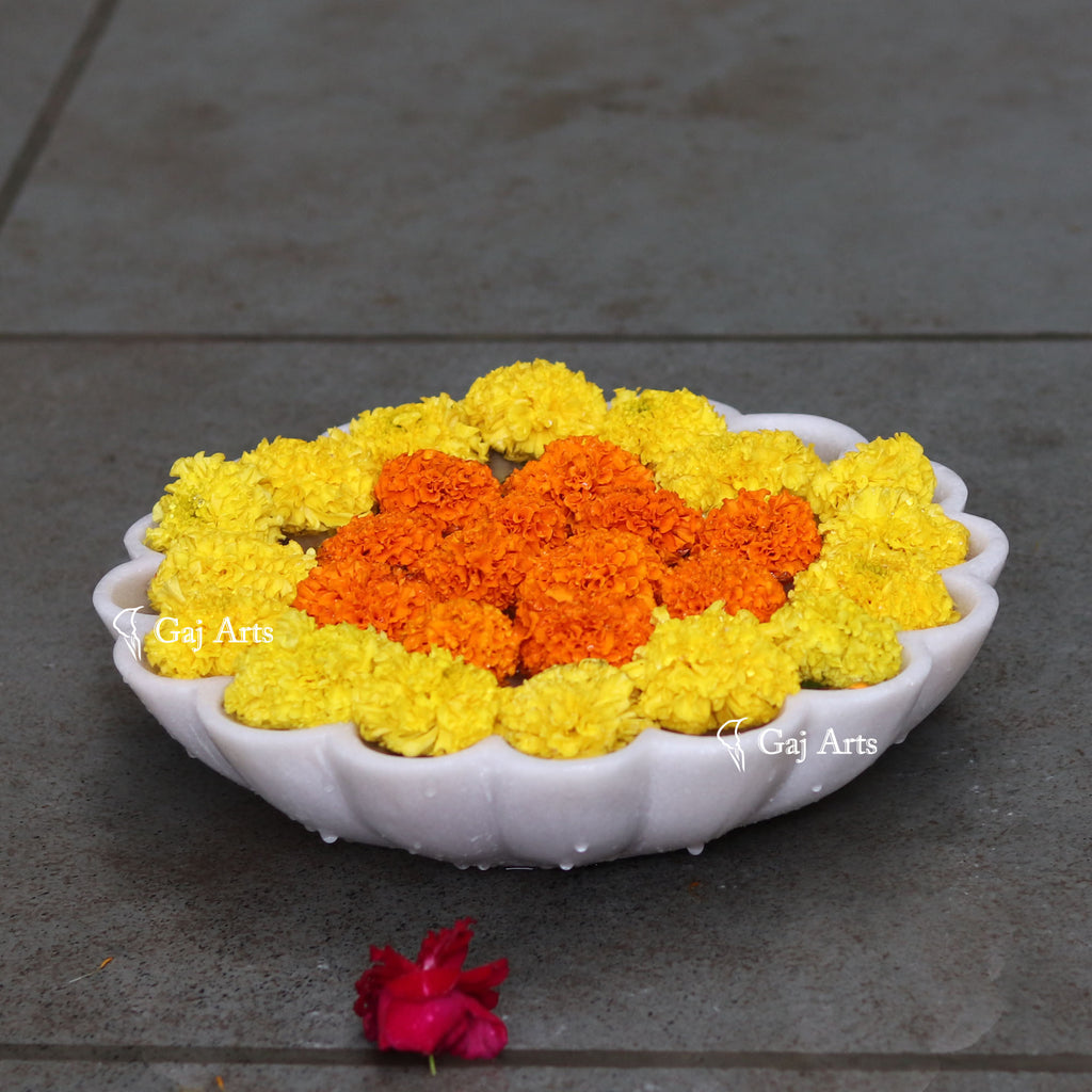 - Flower Floater, Uruli, Home decoration, decorative Marble Flower Bowl, Shaped in a lovely flower. The intricacy of carving is incredible with all features clearly visible. It can be placed in Pooja room before the idols. It can also be placed right in the living room well complemented by other décor items and related interior design accessories or place in the balcony or entrance area to enhance peace of mind at home and office. It’s a charming item that could be a unique addition to your home, office, or special gift.