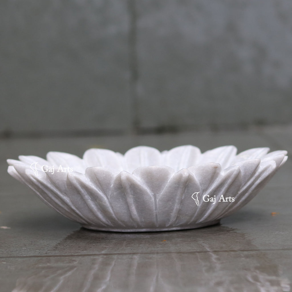 - Marble Flower Bowl is hand-carved from one piece of white marble.