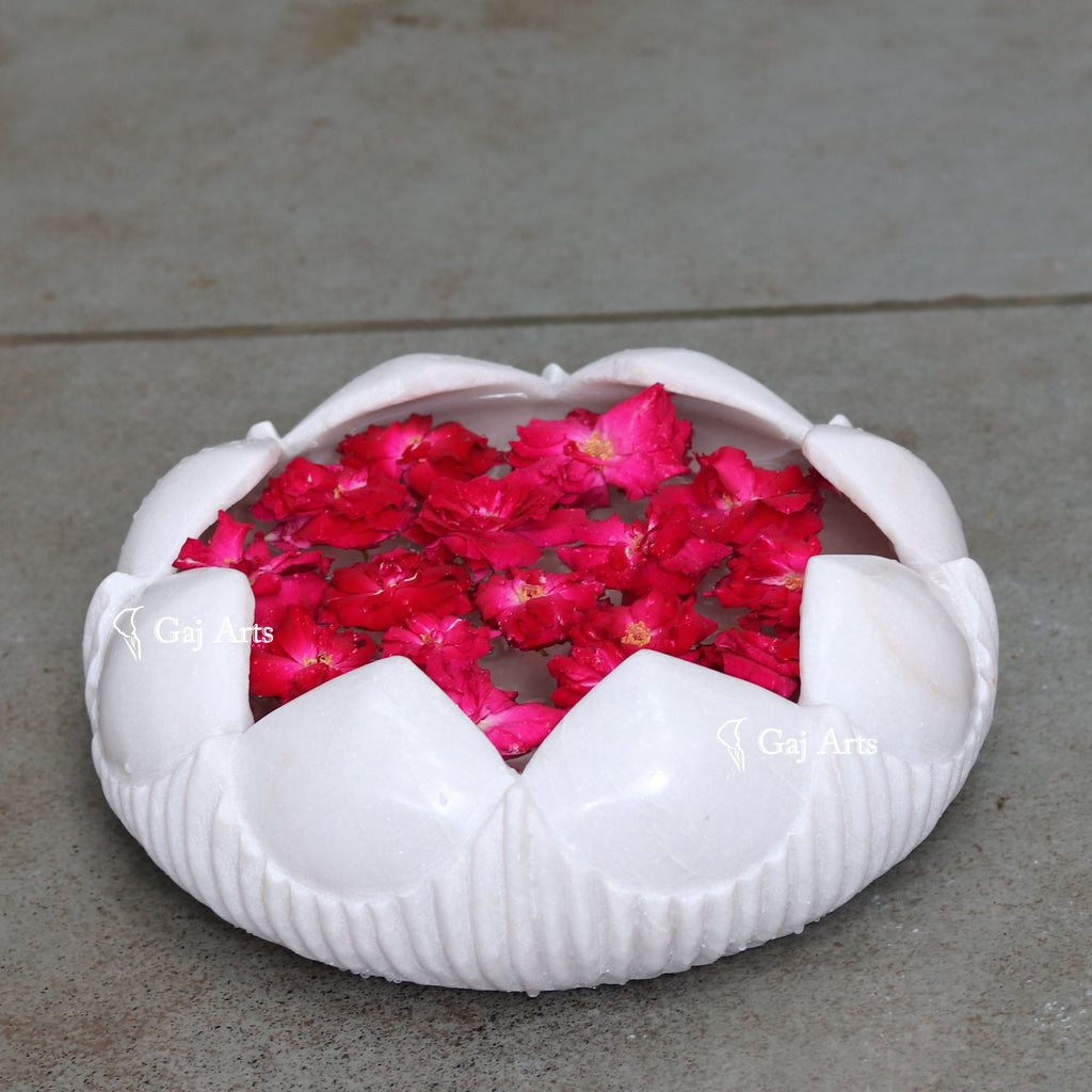 - Flower Floater, Uruli, Home decoration, decorative Marble Flower Bowl, Shaped in a lovely flower. The intricacy of carving is incredible with all features clearly visible. It can be placed in Pooja room before the idols. It can also be placed right in the living room well complemented by other décor items and related interior design accessories or place in the balcony or entrance area to enhance peace of mind at home and office. It’s a charming item that could be a unique addition to your home, office, or special gift.