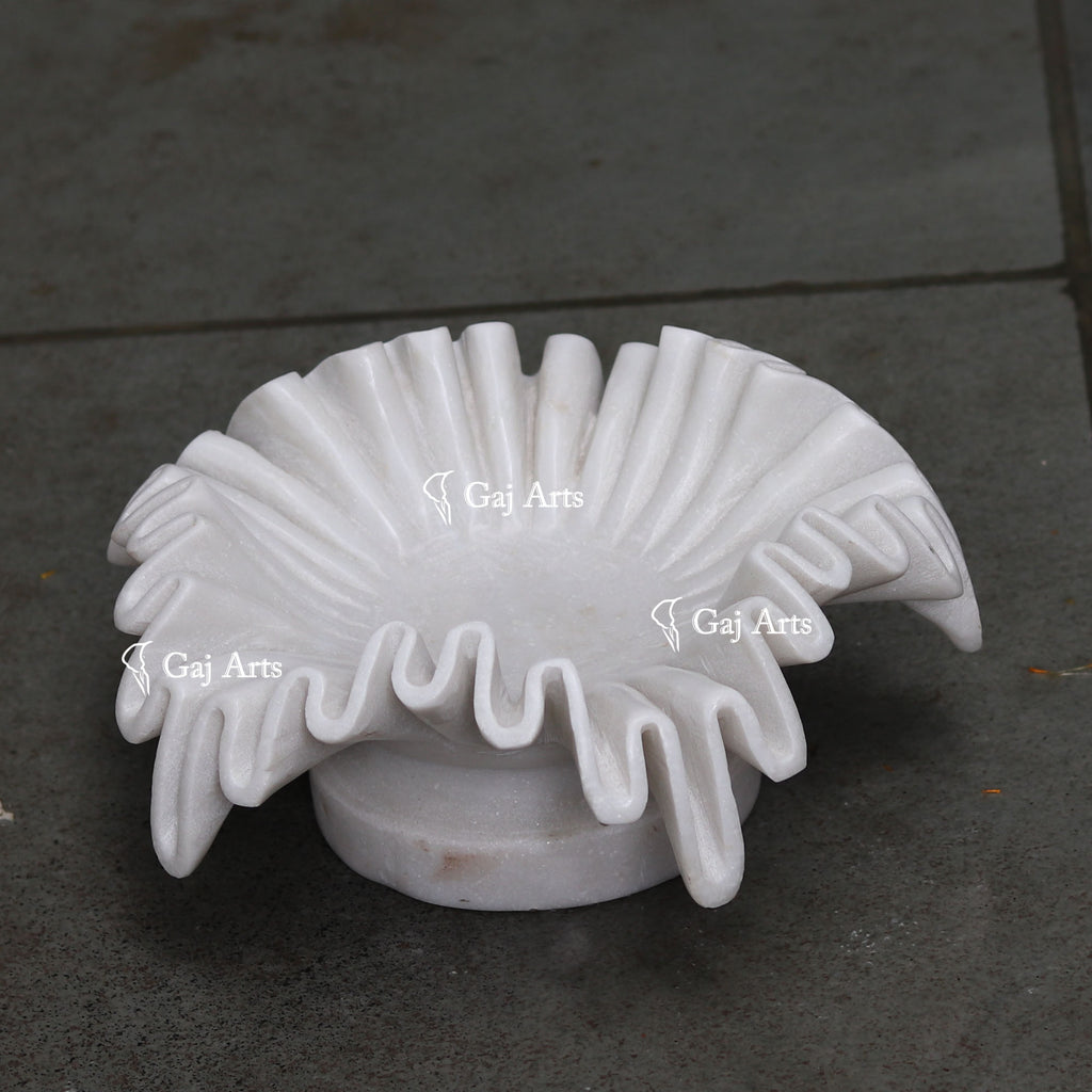 - Marble Flower Bowl is hand-carved from one piece of white marble.