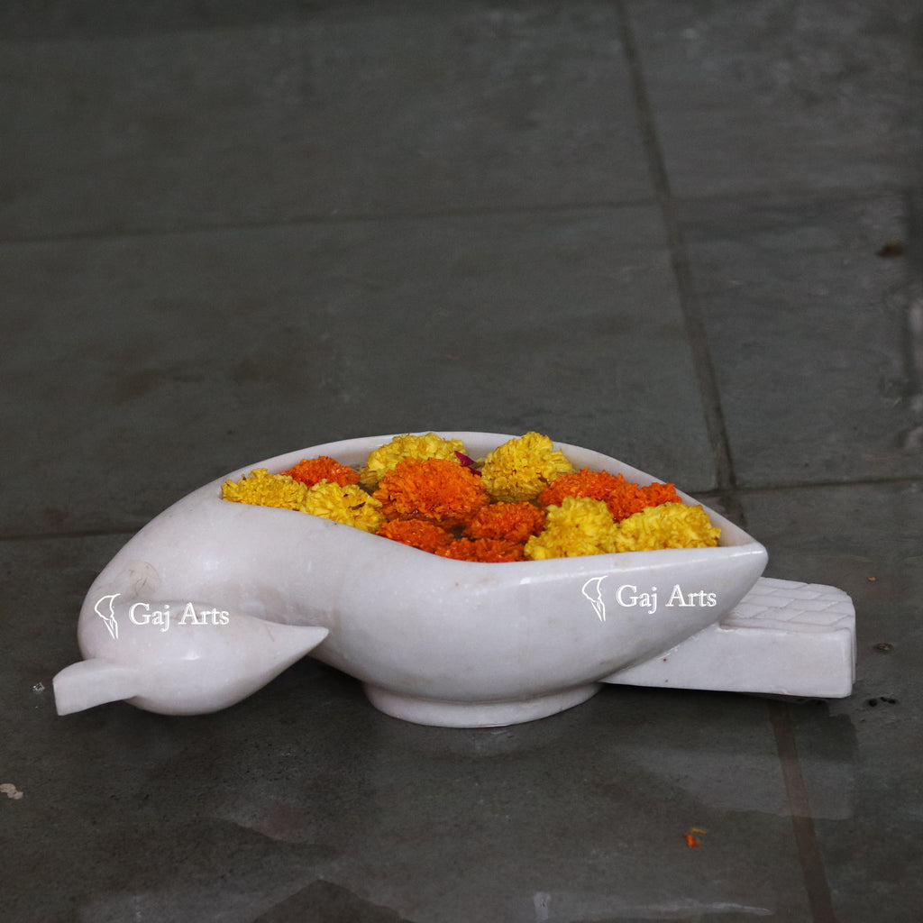 - Marble Bird Shape Bowl, Flower Floater, Uruli, Home decoration, decorative Marble Flower Bowl, Hand-carved Bowl. Shaped in a lovely flower. The intricacy of carving is incredible with all features clearly visible. It can be placed in Pooja room before the idols. It can also be placed right in the living room well complemented by other décor items and related interior design accessories or place in the balcony or entrance area to enhance peace of mind at home and office. It’s a charming item that could be a unique addition to your home, office, or special gift.