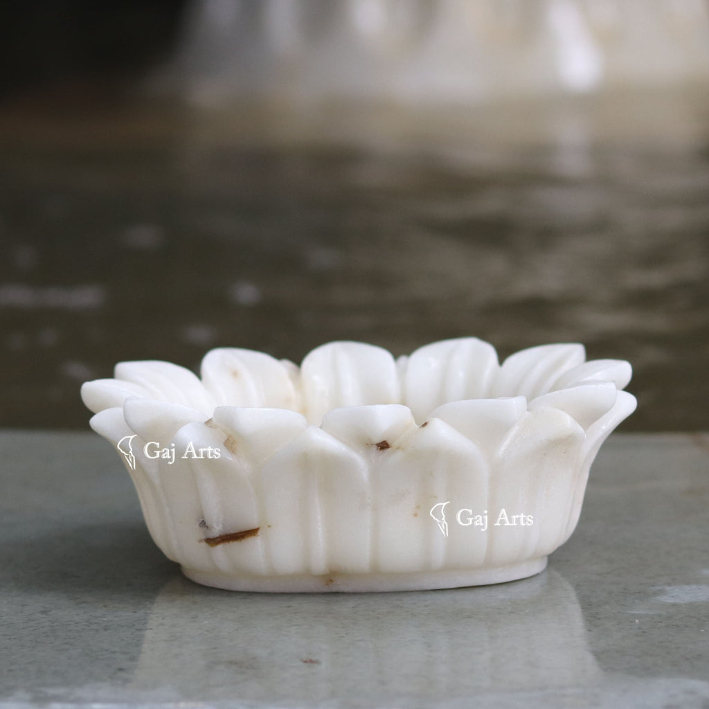 - Marble Flower Bowl, Flower Floater, Uruli,Home decoration, decorative Marble Flower Bowl,Shaped in a lovely flower.The intricacy of carving is incredible with all features clearly visible. It can be placed in Pooja room before the idols .It can also be placed right in living room well complimented by other décor items and related interior design accessories or place in balcony or entrance area to enhance peace of mind at home and office. It’s a charming item that could be a unique addition to your Home,office or special gift.