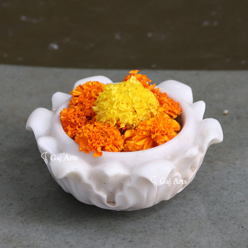 - Marble Flower Bowl, Flower Floater, Uruli,Home decoration, decorative Marble Flower Bowl,Shaped in a lovely flower.The intricacy of carving is incredible with all features clearly visible. It can be placed in Pooja room before the idols .It can also be placed right in living room well complimented by other décor items and related interior design accessories or place in balcony or entrance area to enhance peace of mind at home and office. It’s a charming item that could be a unique addition to your Home,office or special gift.
