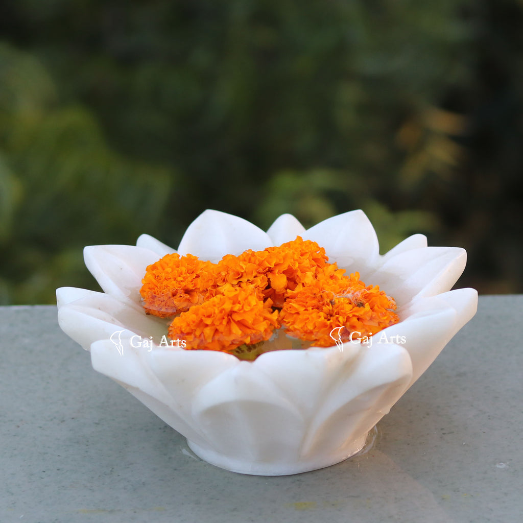 - Marble Flower Bowl, Flower Floater, Uruli,Home decoration, decorative Marble Flower Bowl,Shaped in a lovely flower.The intricacy of carving is incredible with all features clearly visible. It can be placed in Pooja room before the idols .It can also be placed right in living room well complimented by other décor items and related interior design accessories or place in balcony or entrance area to enhance peace of mind at home and office. It’s a charming item that could be a unique addition to your Home,office or special gift.