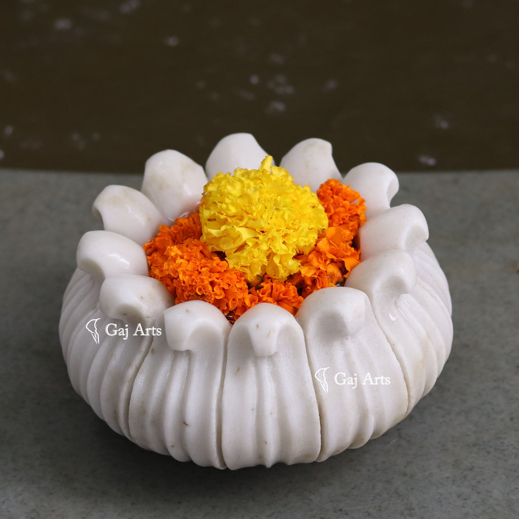 - Marble Flower Bowl, Flower Floater, Uruli,Home decoration, decorative Marble Flower Bowl,Shaped in a lovely flower.The intricacy of carving is incredible with all features clearly visible. It can be placed in Pooja room before the idols .It can also be placed right in living room well complimented by other décor items and related interior design accessories or place in balcony or entrance area to enhance peace of mind at home and office. It’s a charming item that could be a unique addition to your Home,office or special gift.