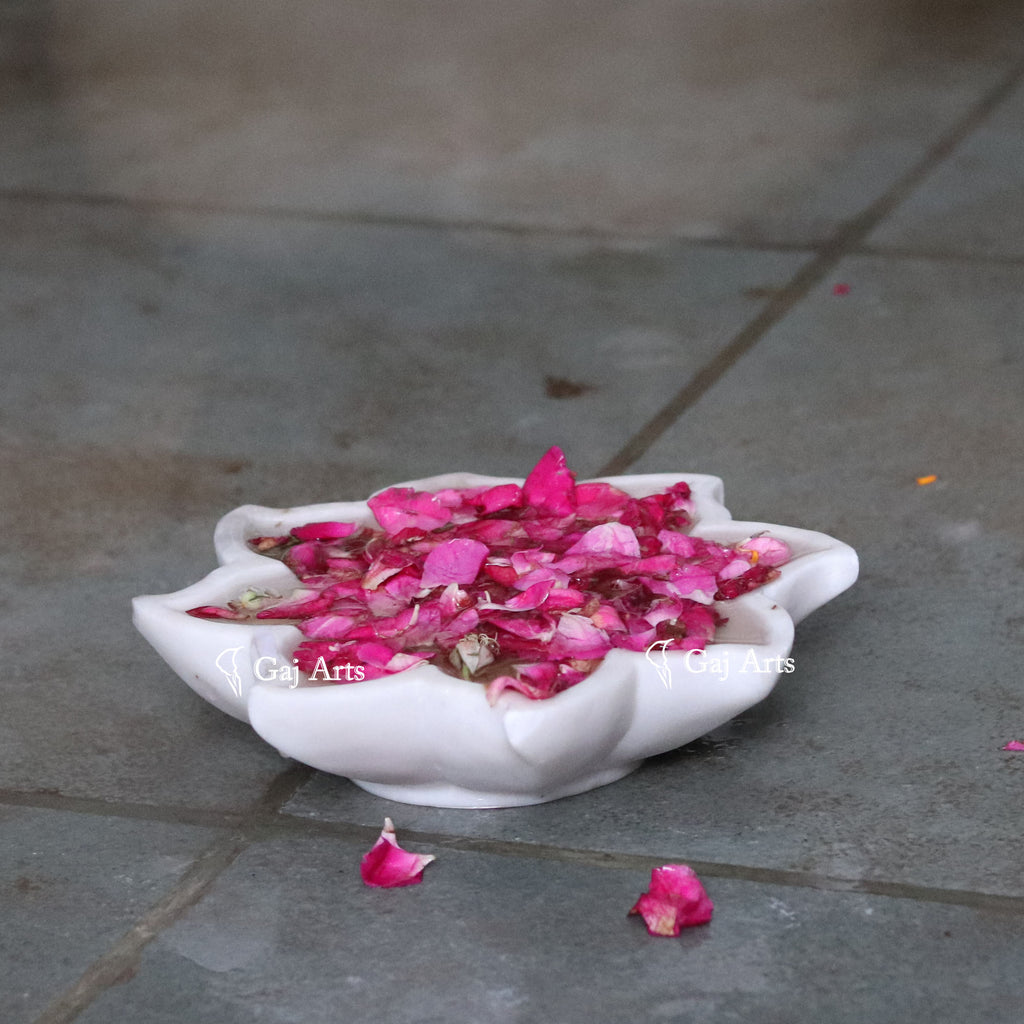 - Marble Flower Bowl, Flower Floater, Uruli,Home decoration, decorative Marble Flower Bowl,Shaped in a lovely flower.The intricacy of carving is incredible with all features clearly visible. It can be placed in Pooja room before the idols .It can also be placed right in living room well complimented by other décor items and related interior design accessories or place in balcony or entrance area to enhance peace of mind at home and office. It’s a charming item that could be a unique addition to your Home,office or special gift.