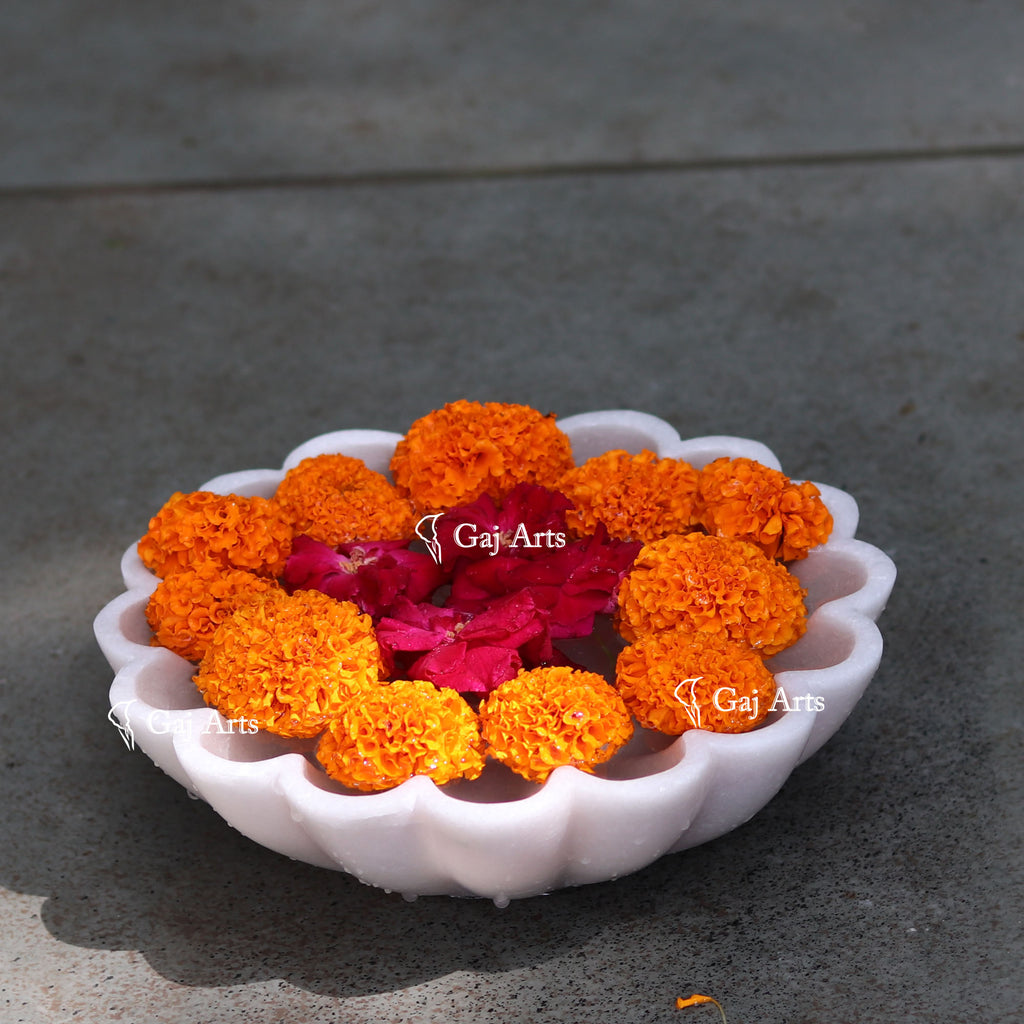 - Flower Floater, Uruli, Home decoration, decorative Marble Flower Bowl, Shaped in a lovely flower. The intricacy of carving is incredible with all features clearly visible. It can be placed in Pooja room before the idols. It can also be placed right in the living room well complemented by other décor items and related interior design accessories or place in the balcony or entrance area to enhance peace of mind at home and office. It’s a charming item that could be a unique addition to your home, office, or special gift.