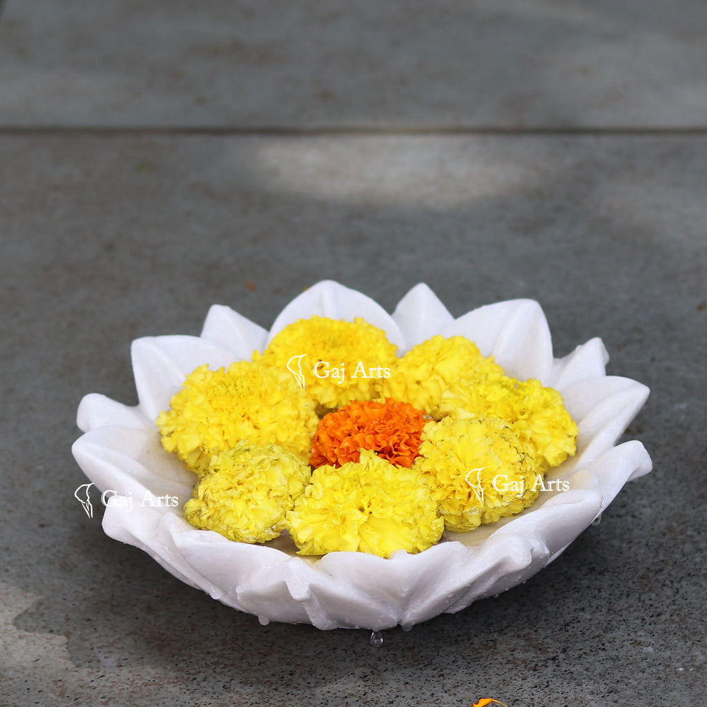 - Flower Floater, Uruli, Home decoration, decorative Marble Flower Bowl, Shaped in a lovely flower. The intricacy of carving is incredible with all features clearly visible. It can be placed in Pooja room before the idols. It can also be placed right in the living room well complemented by other décor items and related interior design accessories or place in the balcony or entrance area to enhance peace of mind at home and office. It’s a charming item that could be a unique addition to your home, office, or special gift.