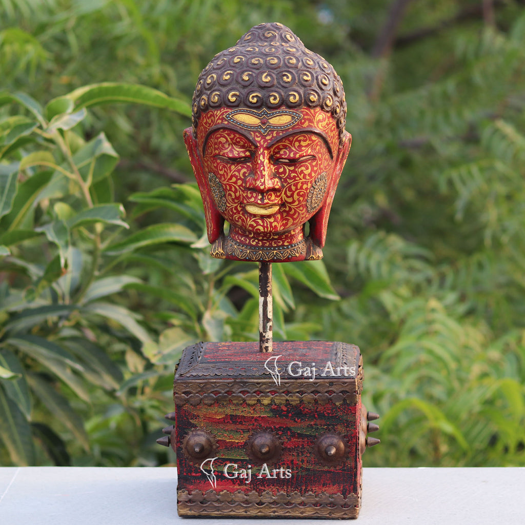- Invite a sense of peace and tranquility into your home with this serene Buddha Head Statue. The intricate details, including the serene expression and intricate hairdo, capture the essence of the enlightened one. The statue is mounted on a sturdy base, adorned with metal accents, adding a touch of elegance. Perfect for meditation, yoga, or simply as a decorative piece, this statue is a beautiful representation of spiritual wisdom. Makes a memorable gift.