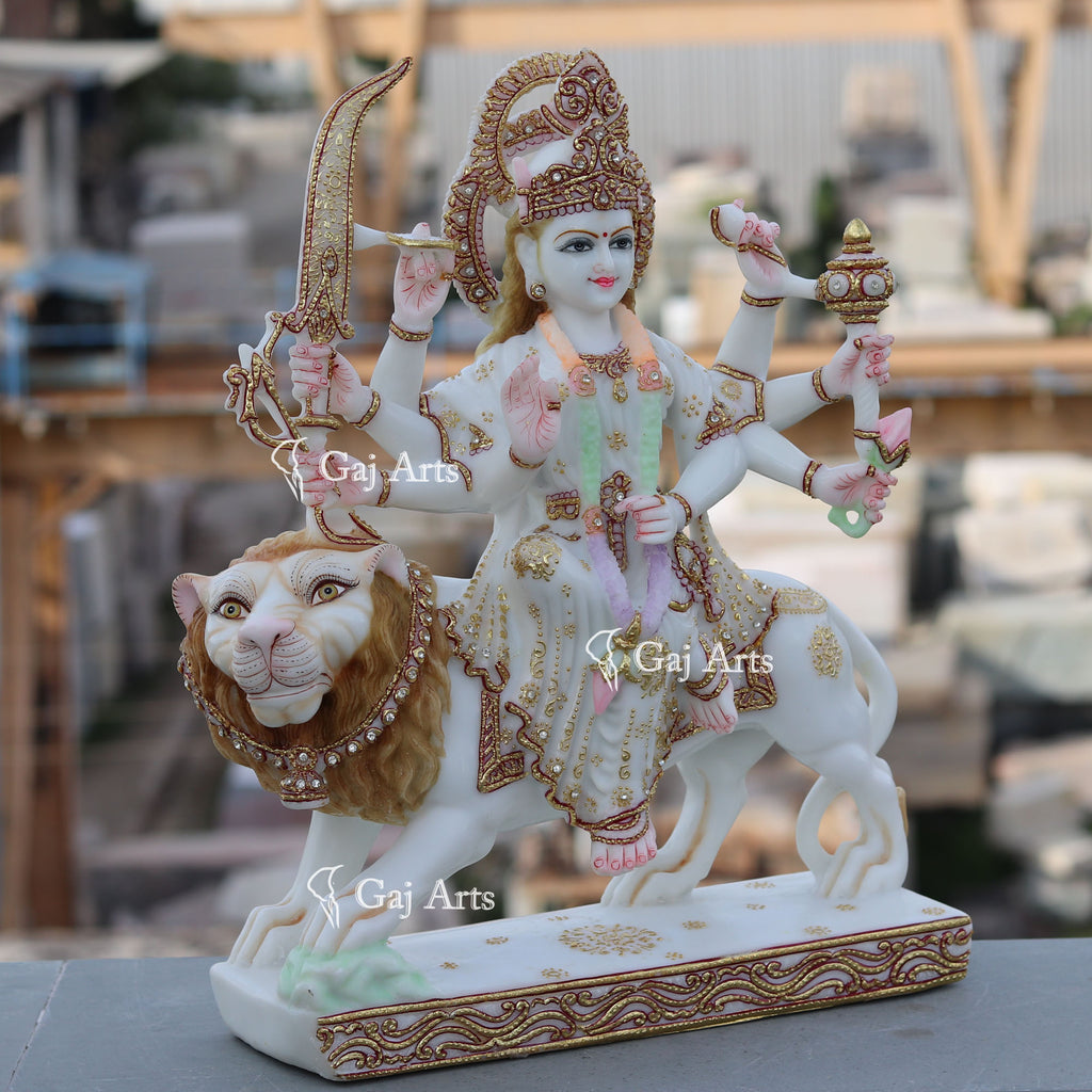 - Durga Mata is hand carved from one piece of White Marble Ethiopia