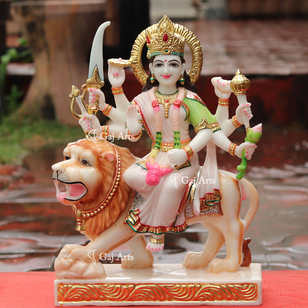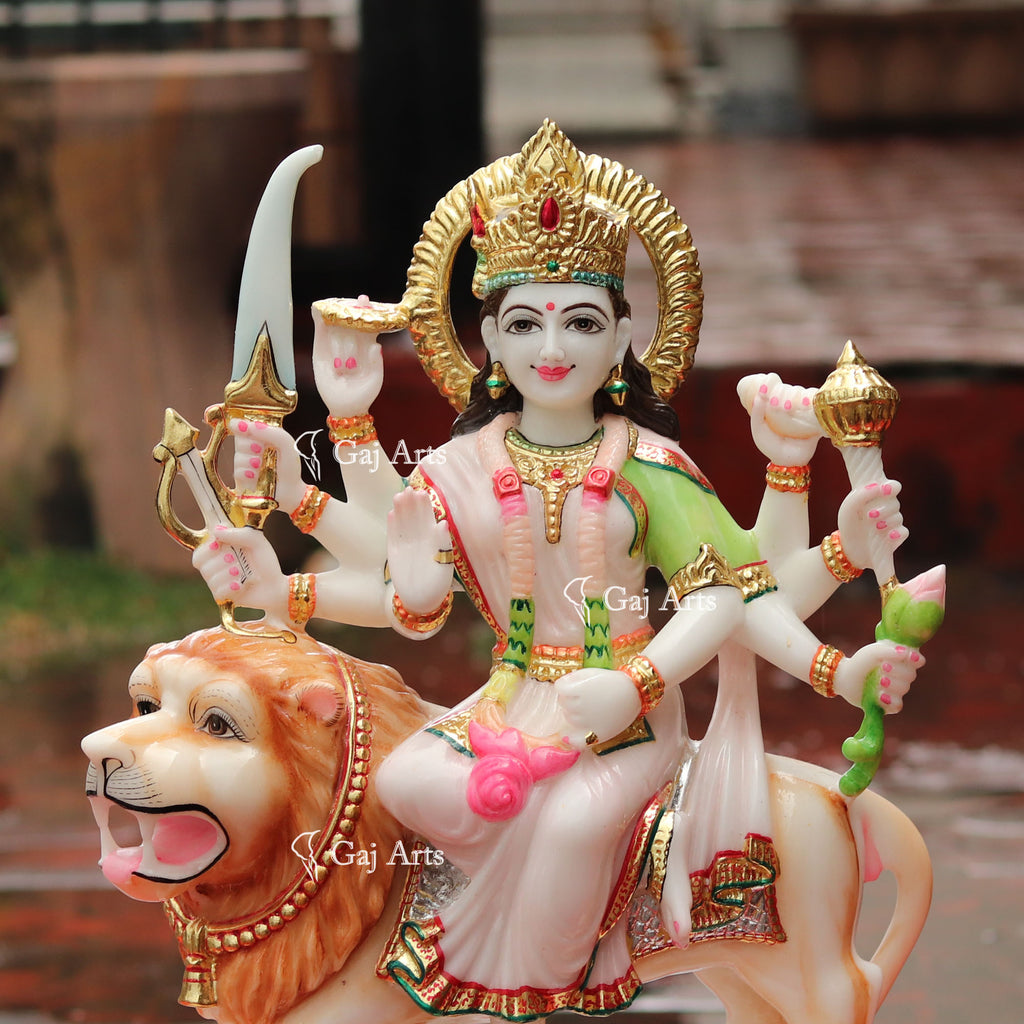 - Durga Mata is hand carved from one piece of white marble.