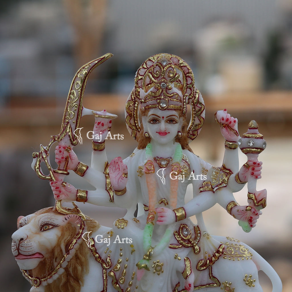 - Durga Mata is hand carved from one piece of White Marble Ethiopia