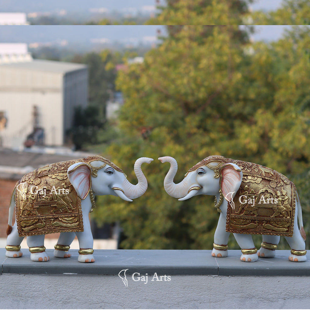 3. Rajwadi Elephant Marble carving with Trunk up. Elephant Kalin is carved with a beautiful design.