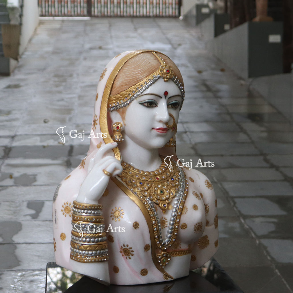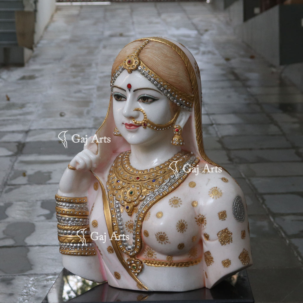 3. Bani Thani is Rajasthani Traditional Lady Figure. Wear ornaments on Head, Nose, Neck, and Hand. These marble lady statues are designed, carved, and constructed in a very appreciable manner. It highly appreciable and eye-catching but also makes it efficient and reliable for a long-lasting lifetime