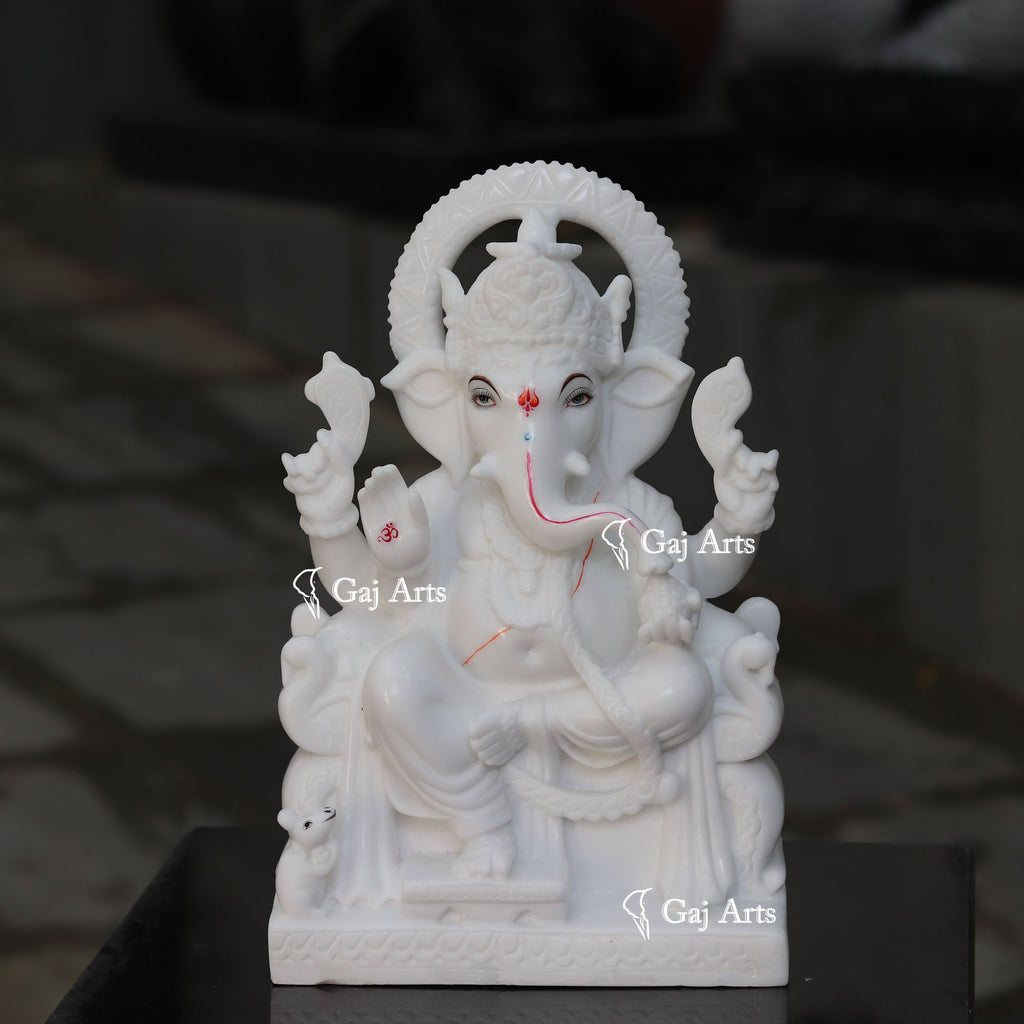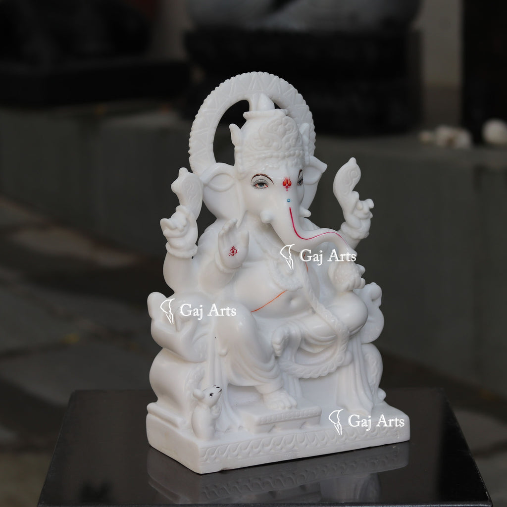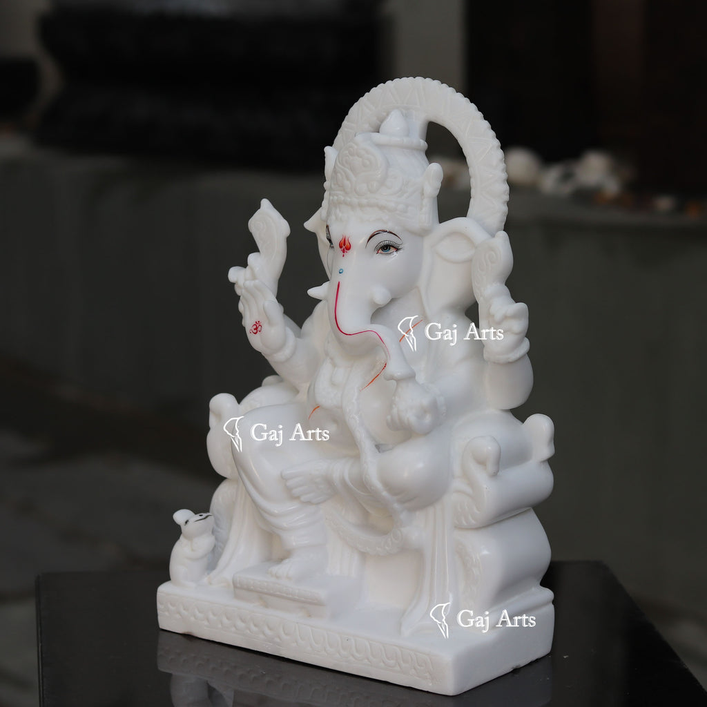 4. Ganesh is hand carved from one piece of  White Marble Ethiopia