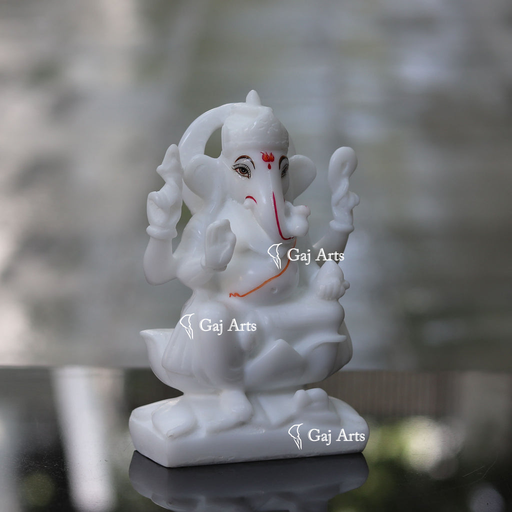 4. Ganesh is hand carved from one piece of white Marble Powder