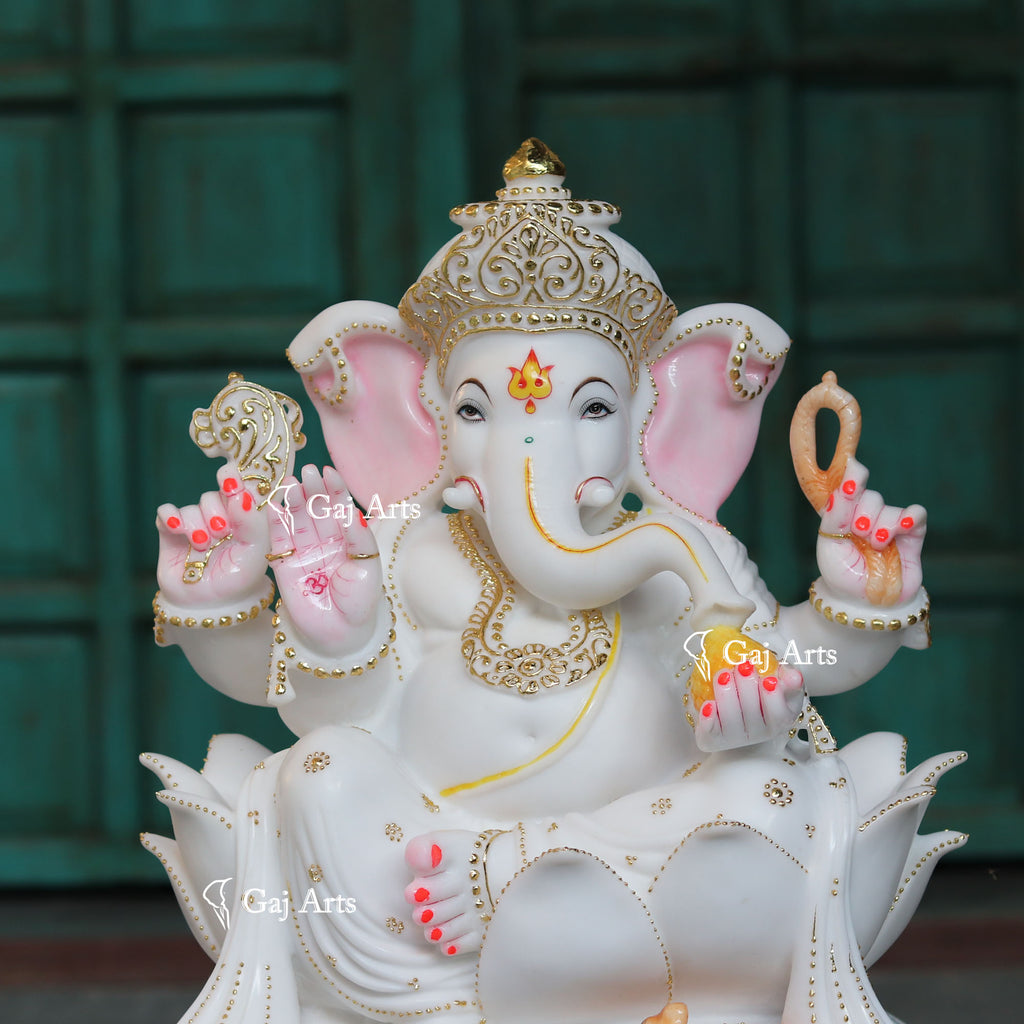 - Ganesh is hand carved from one piece of White Marble Ethiopia