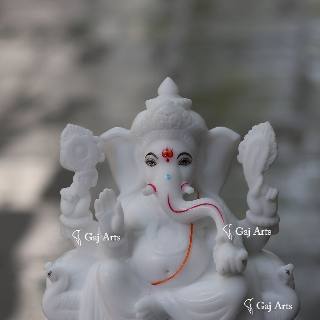 - Ganesh is hand carved from one piece of white Marble Powder