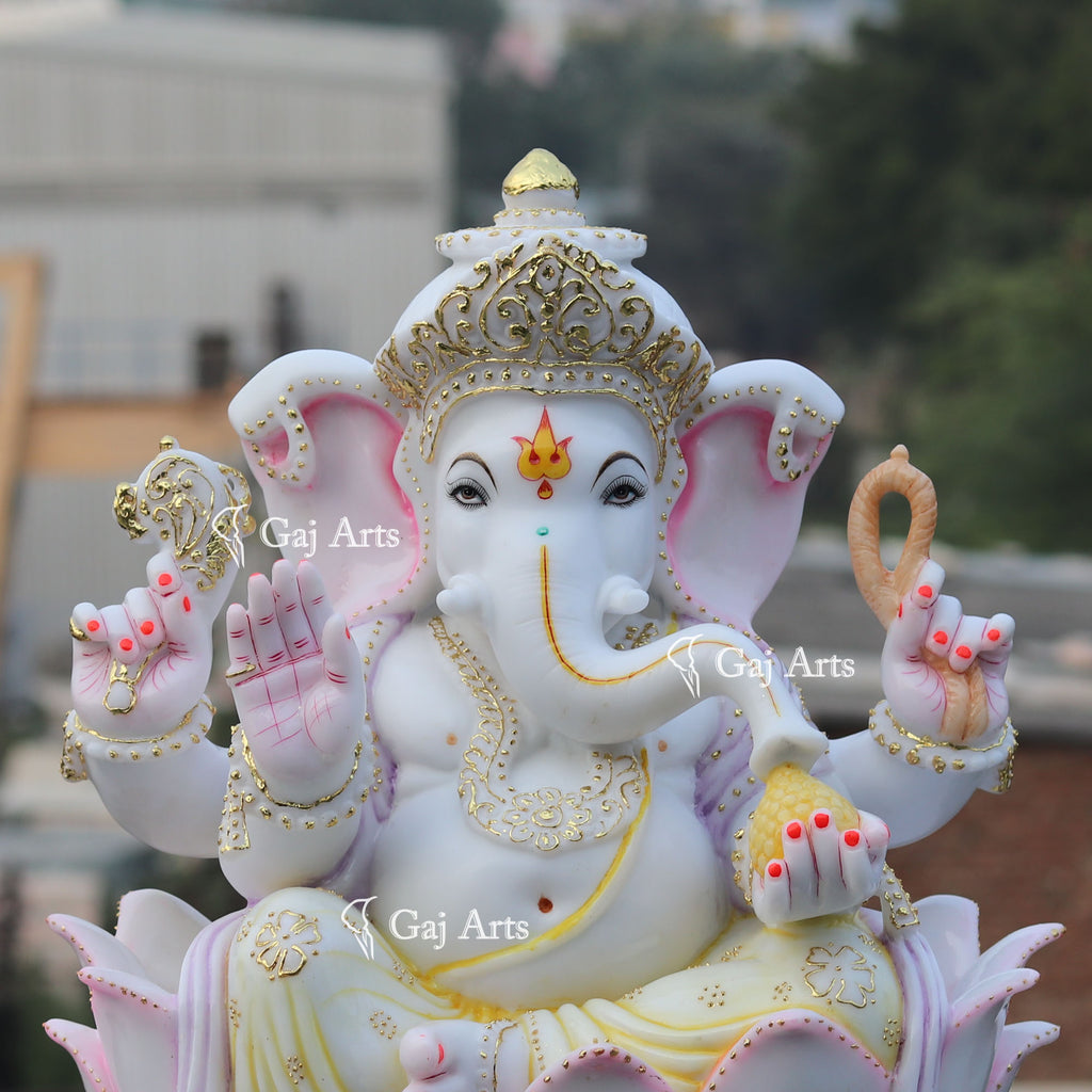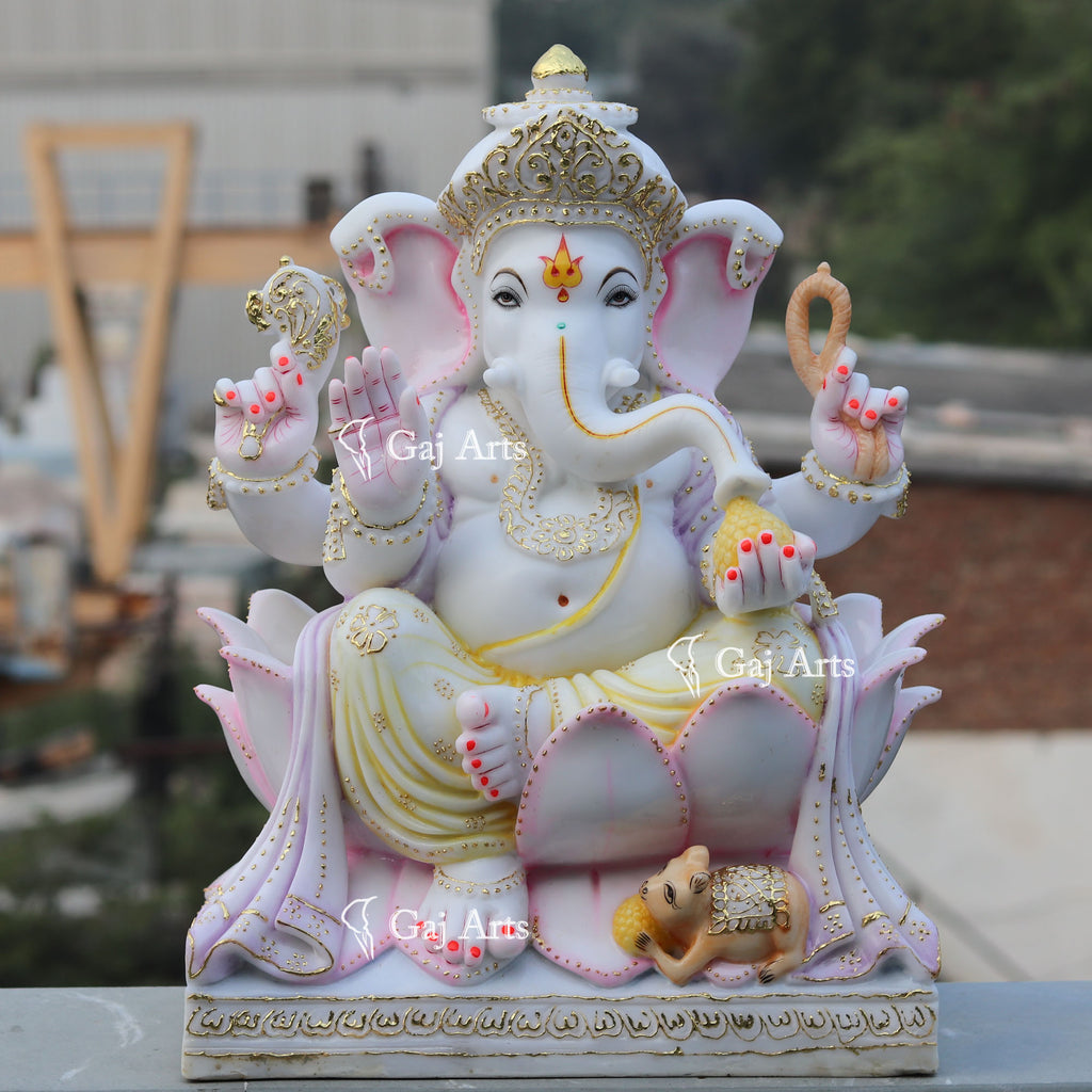 - Ganesh is hand carved from one piece of White Marble Ethiopia.