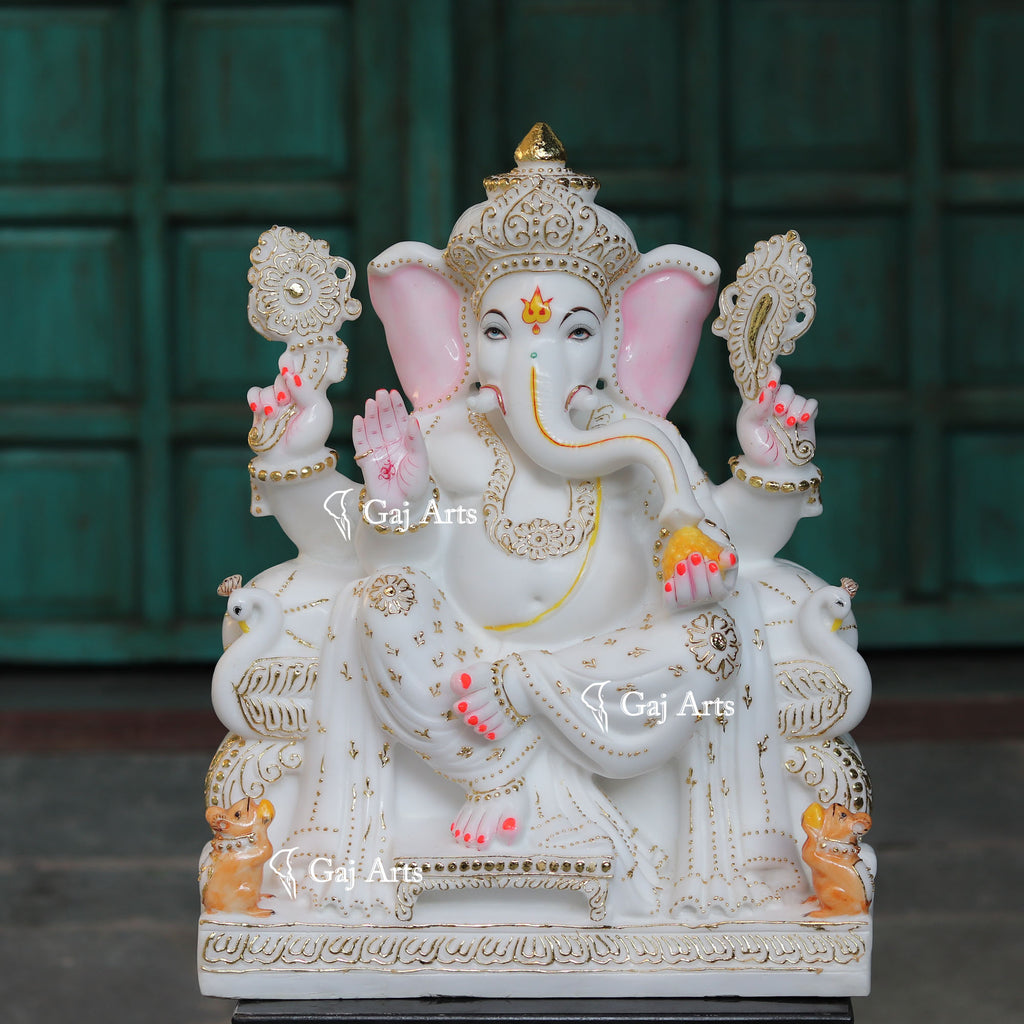 5. Ganesh is hand carved from one piece of  White  Marble Ethiopia.