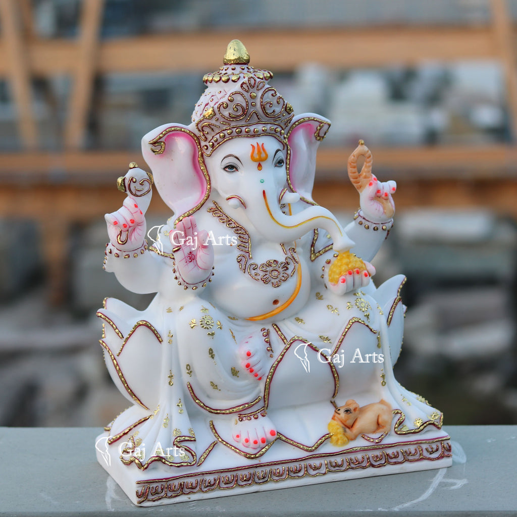 - Ganesh is hand carved from one piece of White Marble Ethiopia.