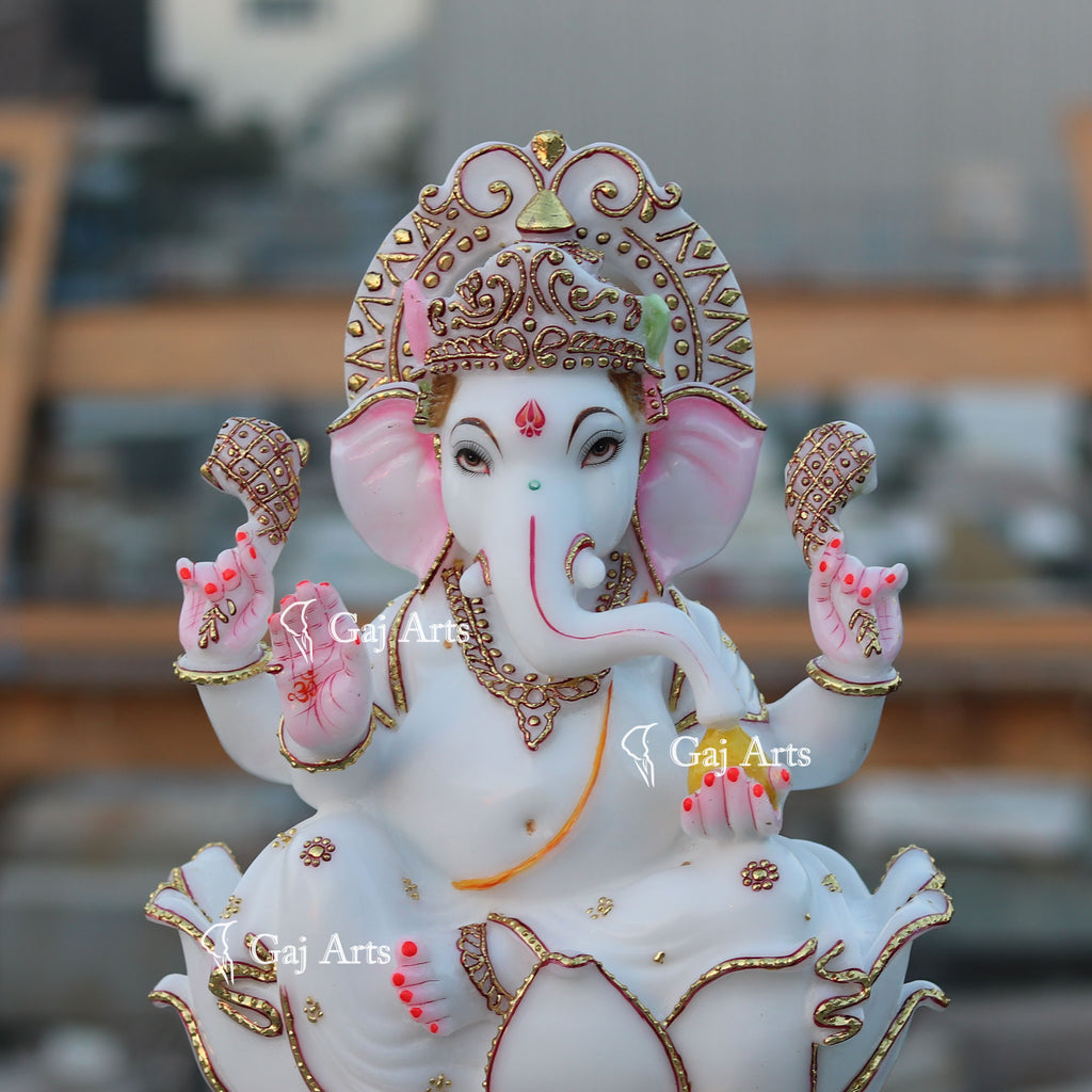 - Ganesh is hand carved from one piece of White Marble Ethiopia