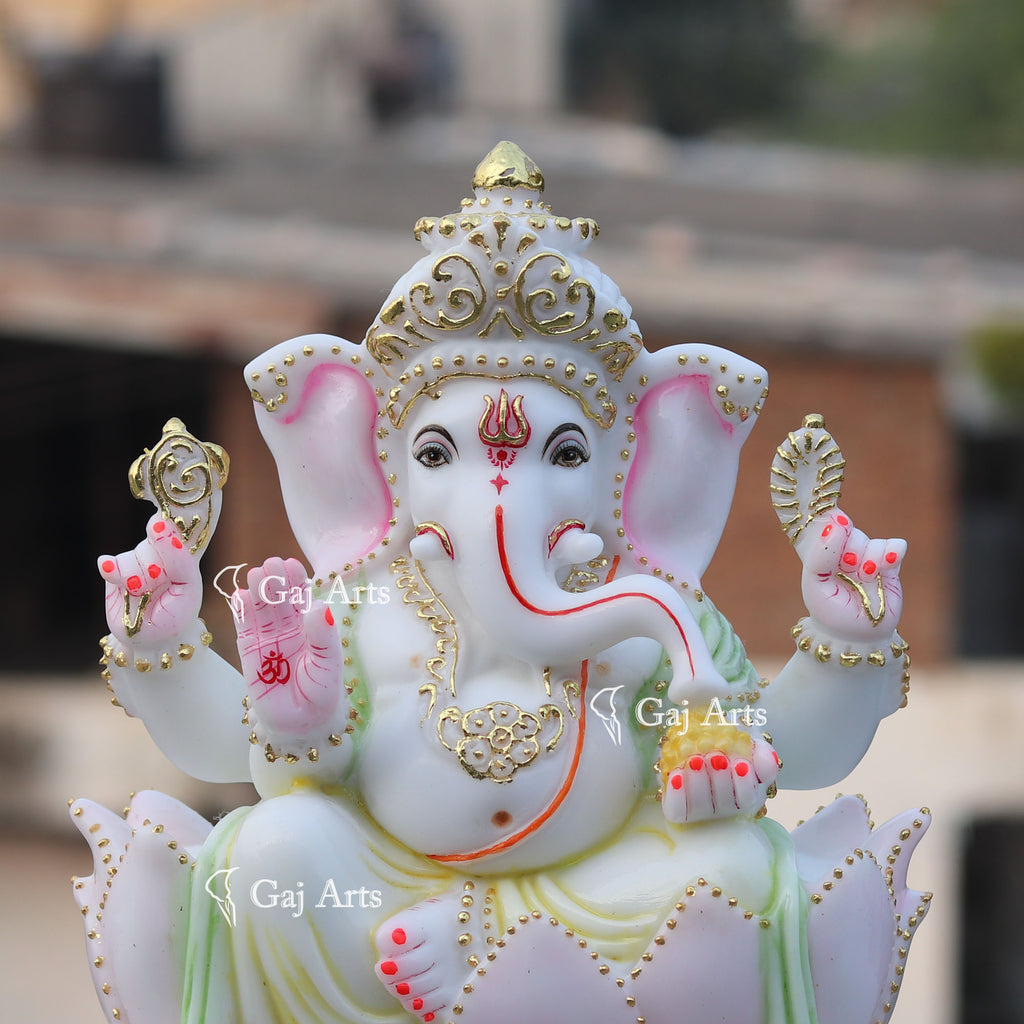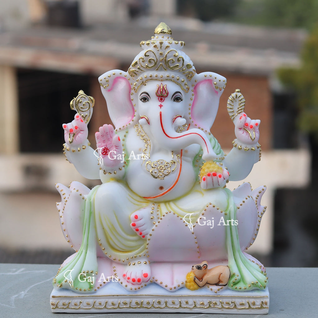 - Ganesh is hand carved from one piece of White Marble Ethiopia