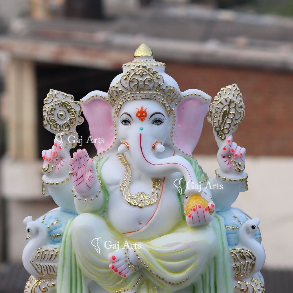 - Ganesh is hand carved from one piece of White Marble Ethiopia