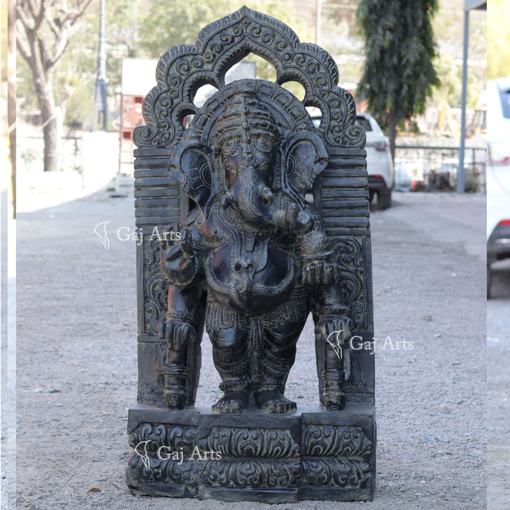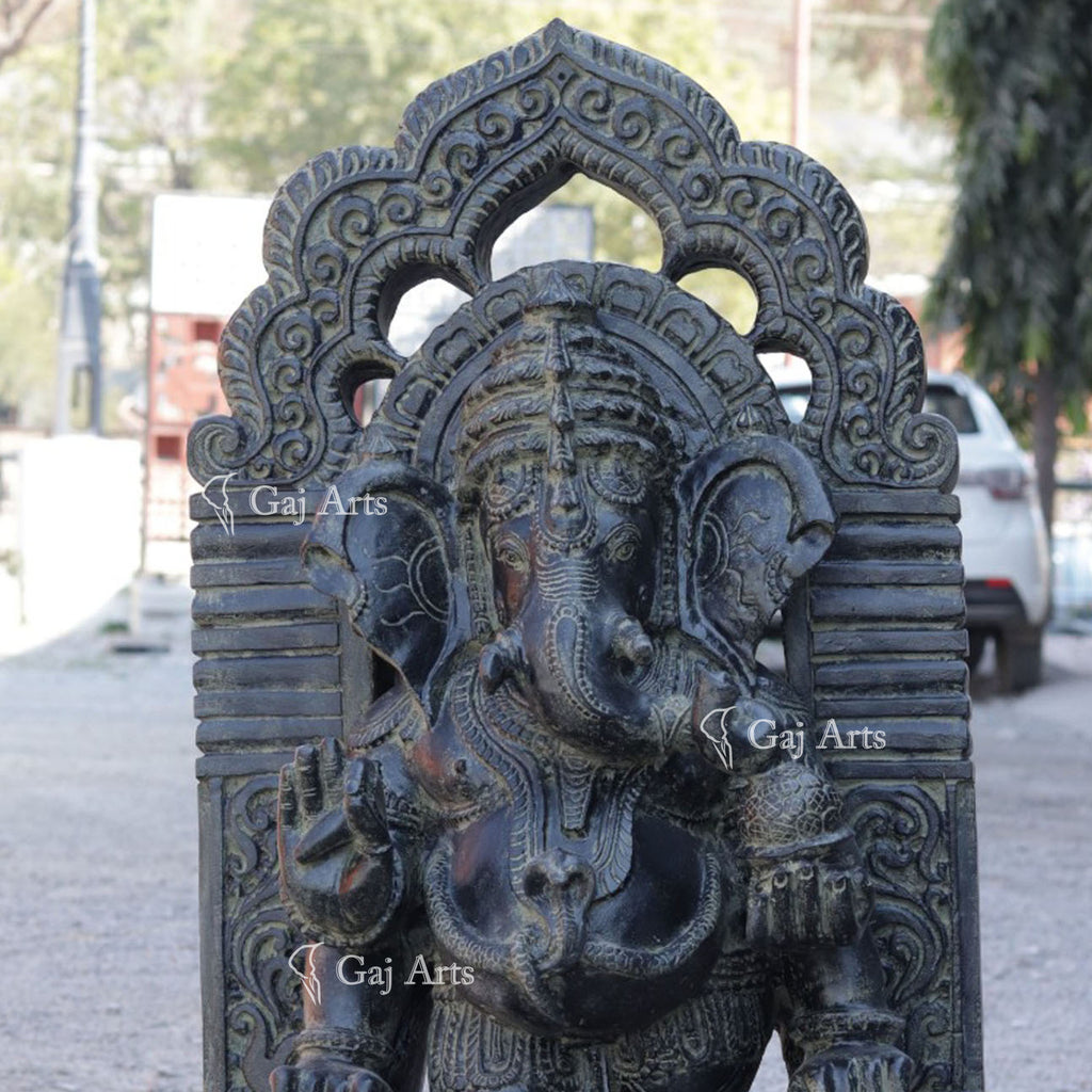 2. Ganesh standing on a Singhasan Base pedestal carrying multiple objects that is supposed to symbolize life success and steps to remove obstacles from your life. Ganesha is carrying an axe to symbolize that we must cut off bonds of attachment & the other hand holding a full bowl of laddu.