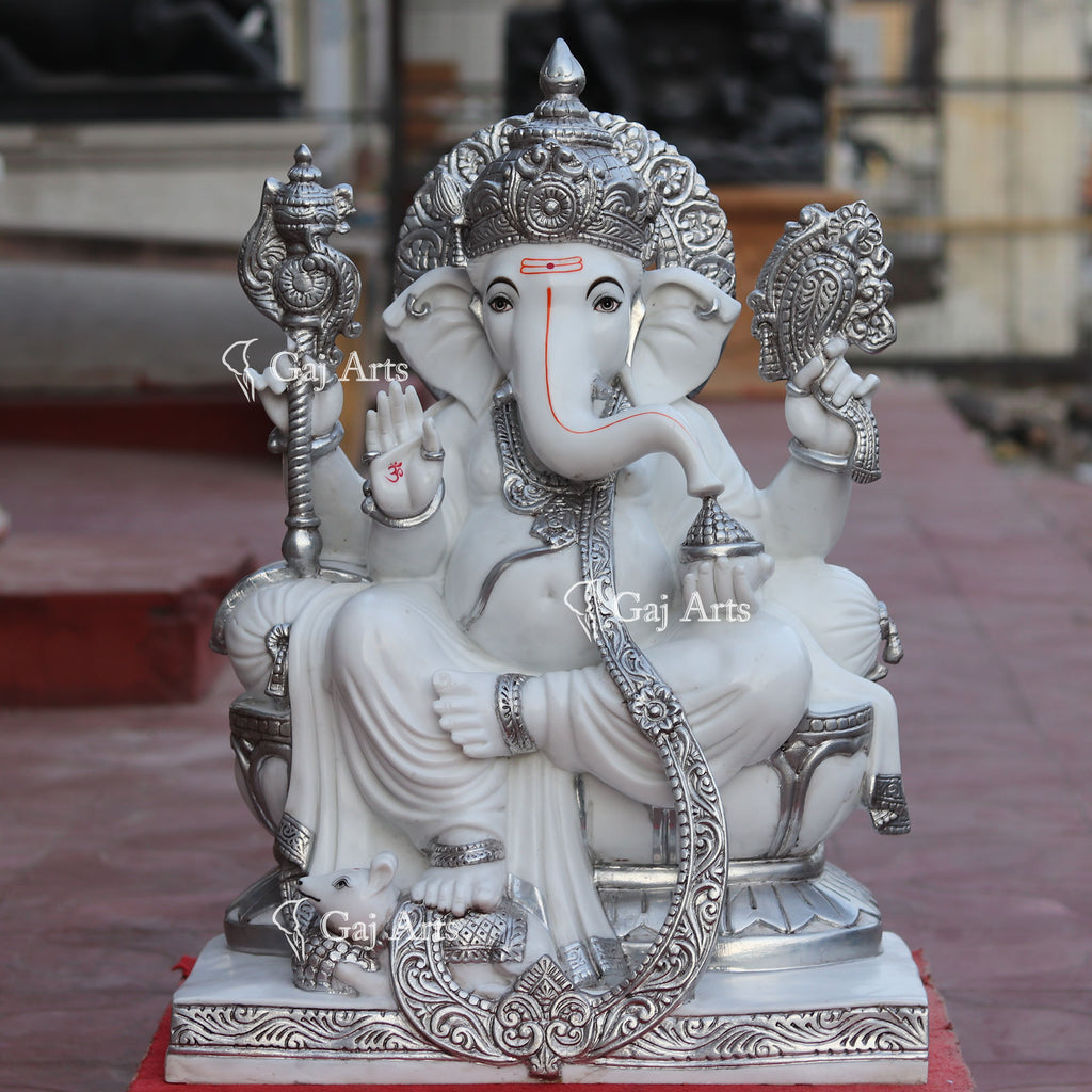 - Ganesh is hand carved from one piece of white Marble Powder