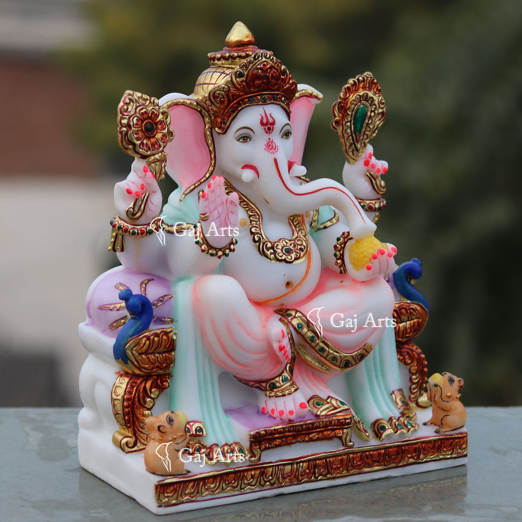 - Ganesh is hand carved from one piece of white Marble Ethiopia