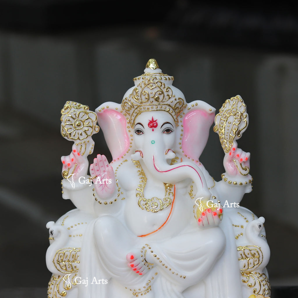 - Ganesh is hand carved from one piece of White Marble Ethiopia.