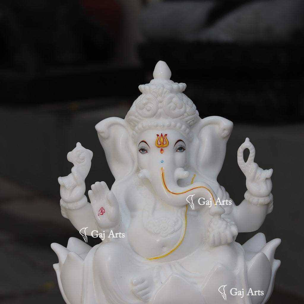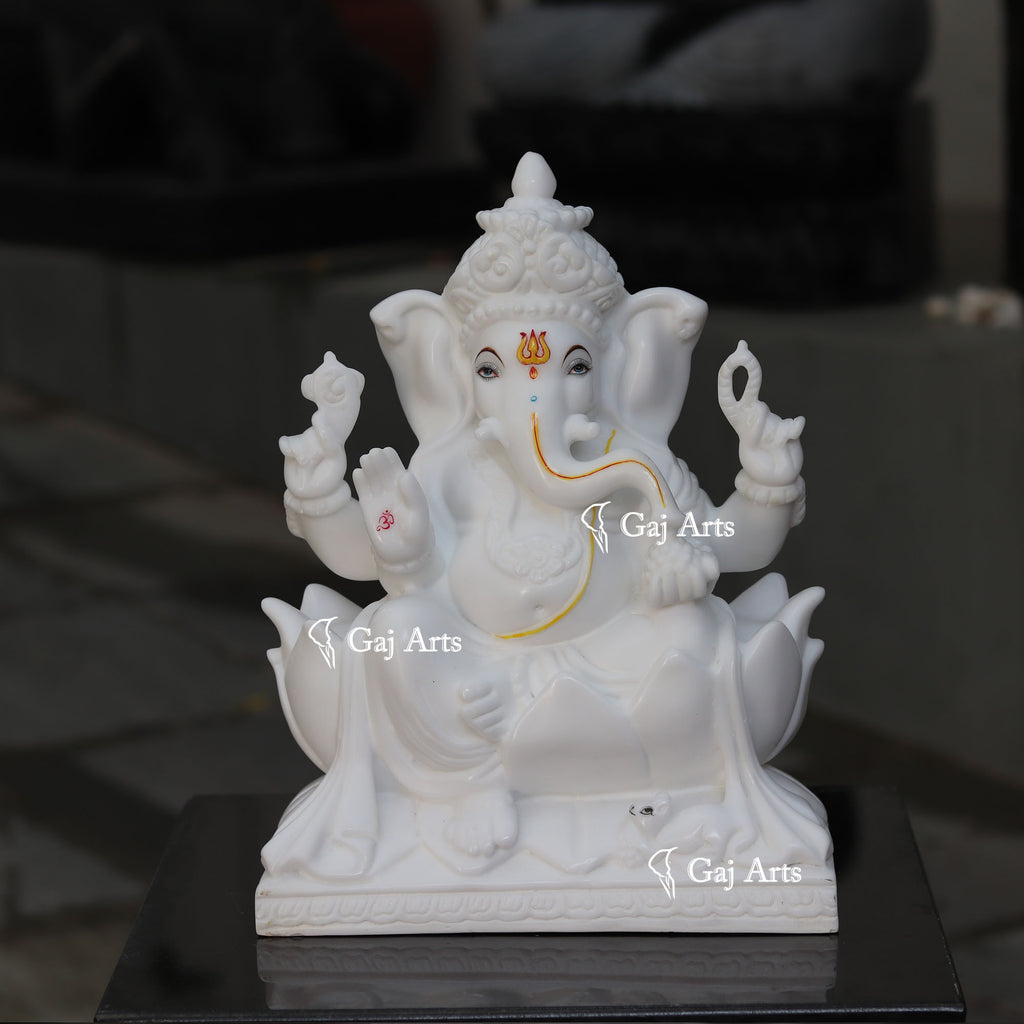 - Ganesh is hand carved from one piece of White Marble Ethiopia.