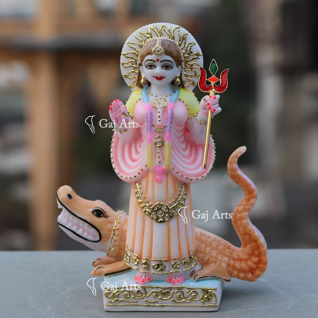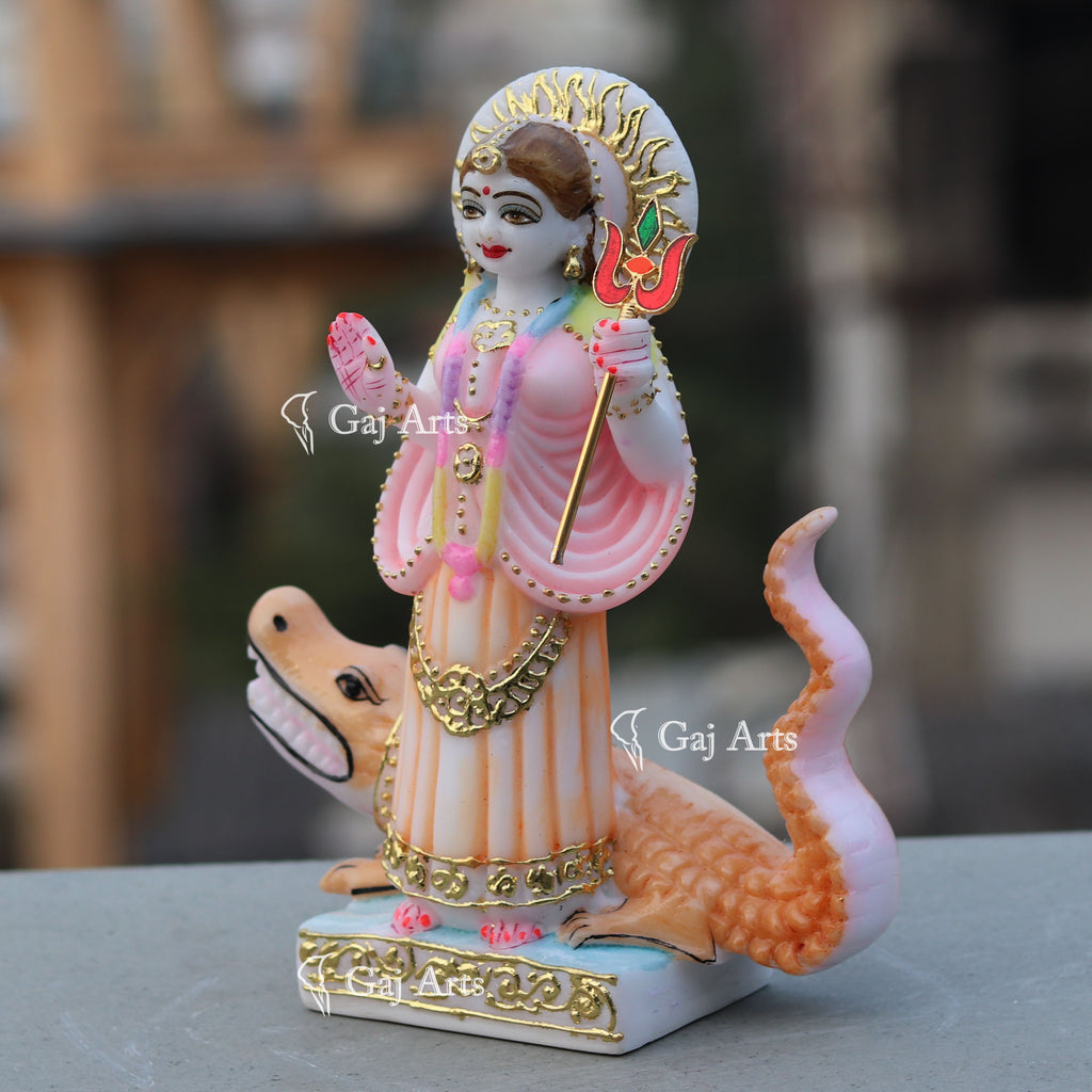 3. The Crocodile is attributed as her vahana or vehicle.