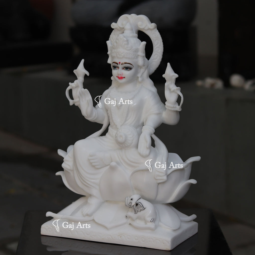 - Lakshmi Maa is hand carved from one piece of White marble Ethiopia