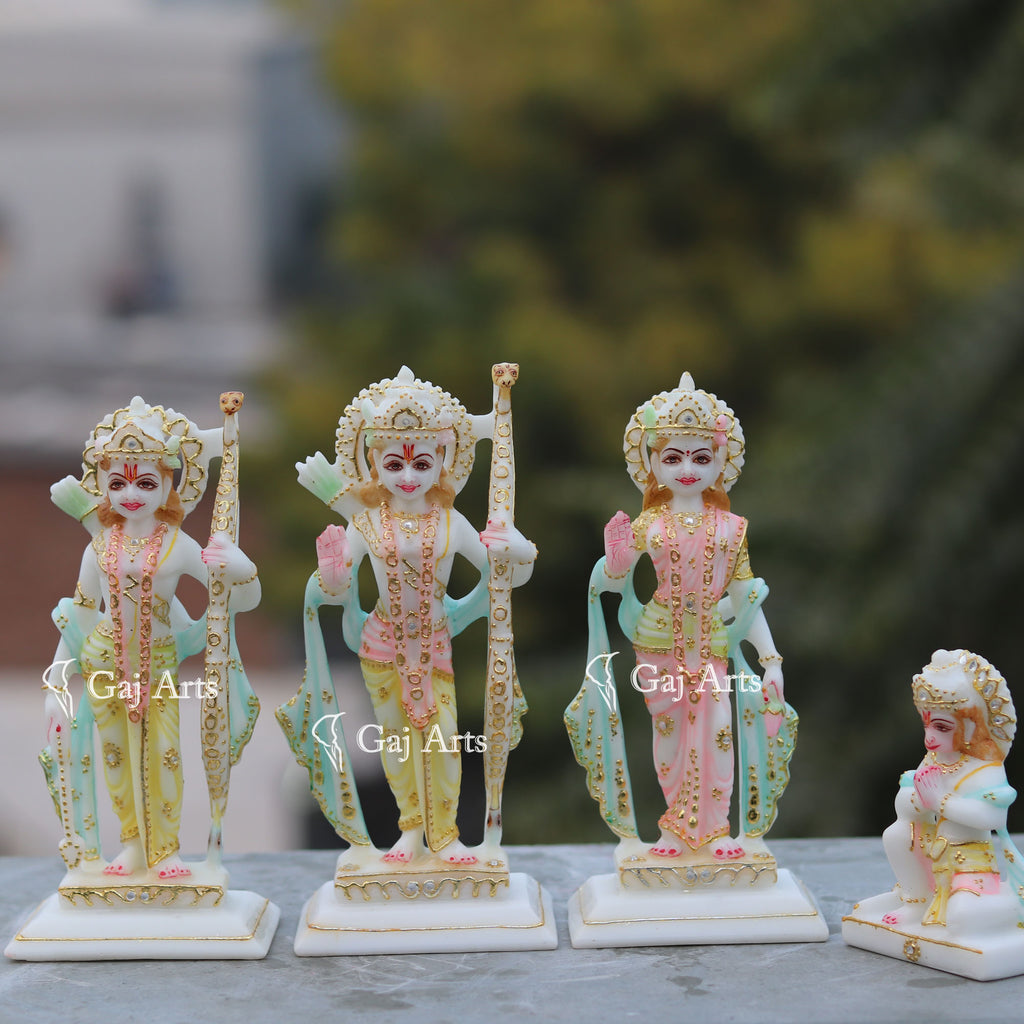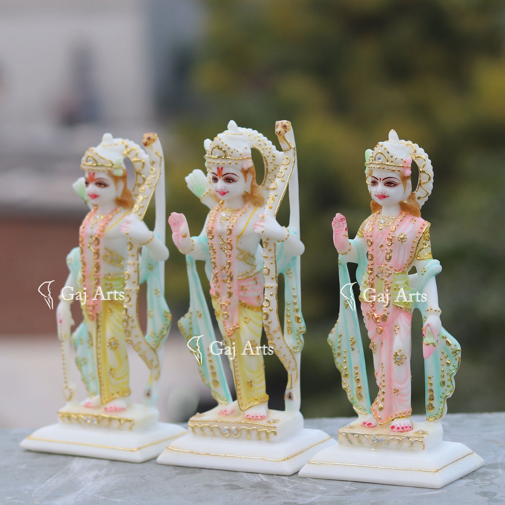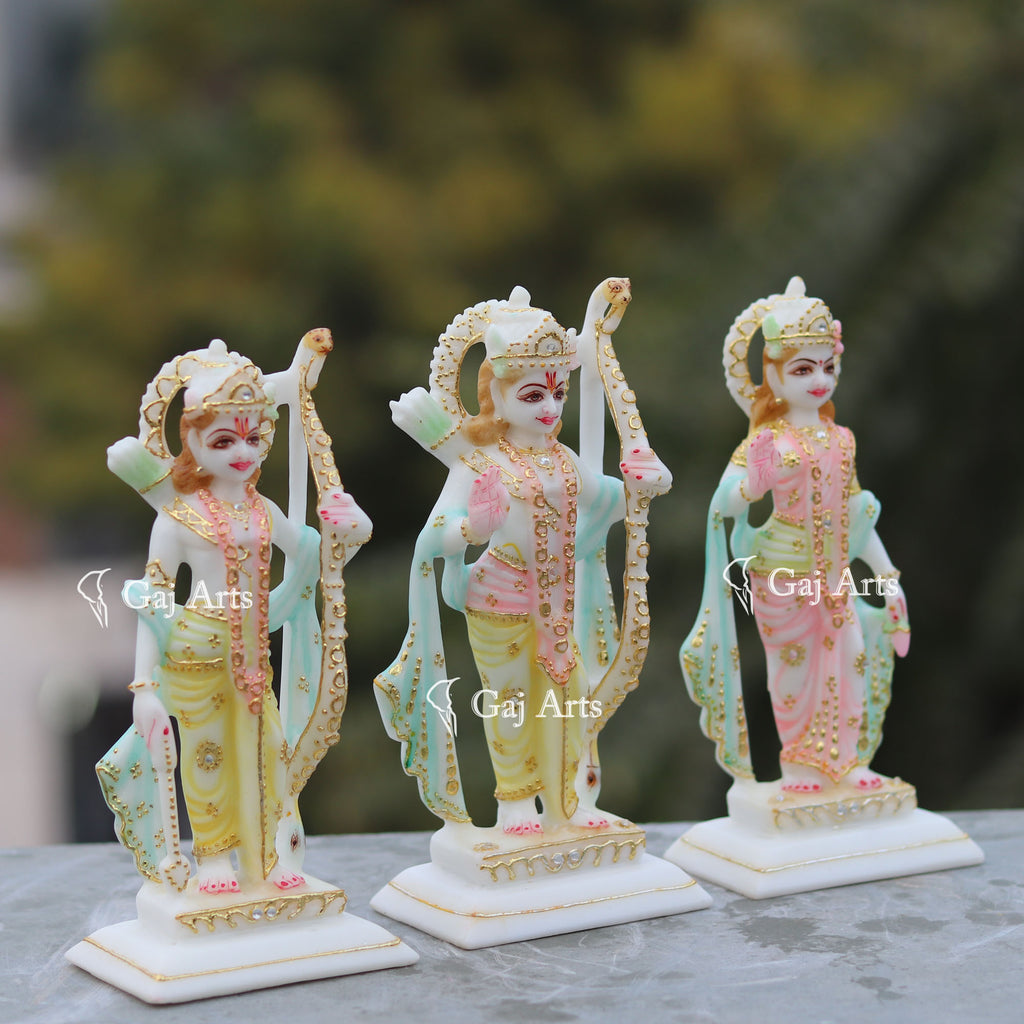 5. Ram holds a Bow in Left hand, Right hand with Abhaya Mudra, Lakshmana hold Arrow in Right Hand, left hand with Bow & Sita holding lotus in left hand with Ashirwad Mudra.