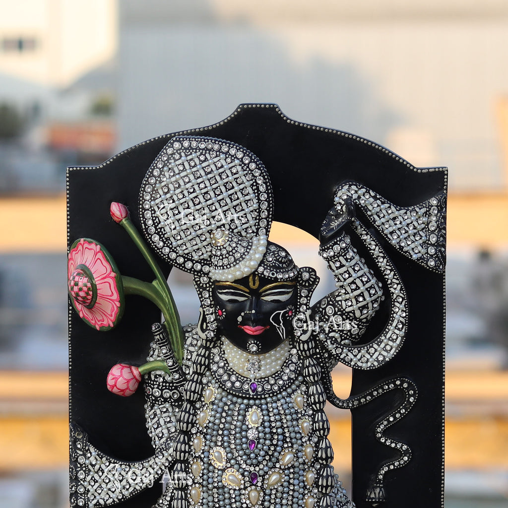 2. ShreeNathji is decorated with semi-precious pearls, Rhinestone & color.
