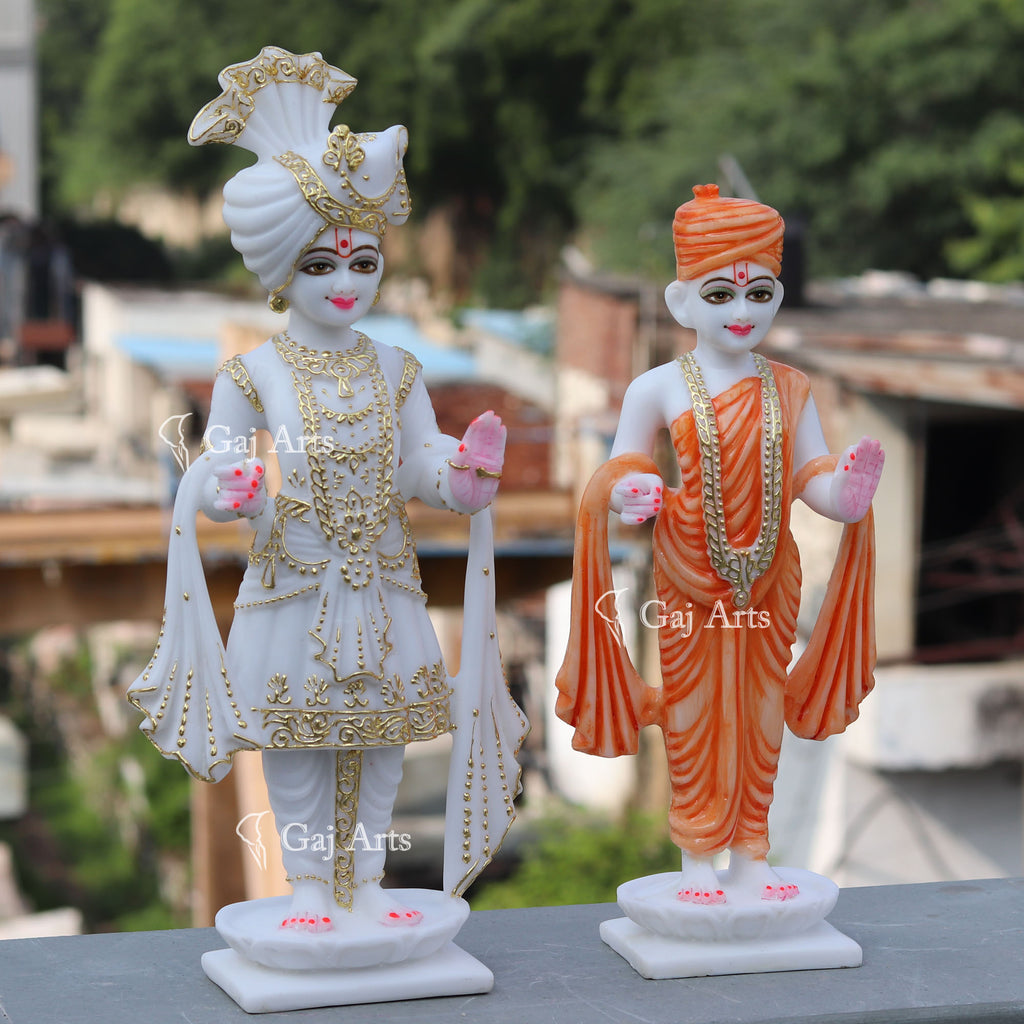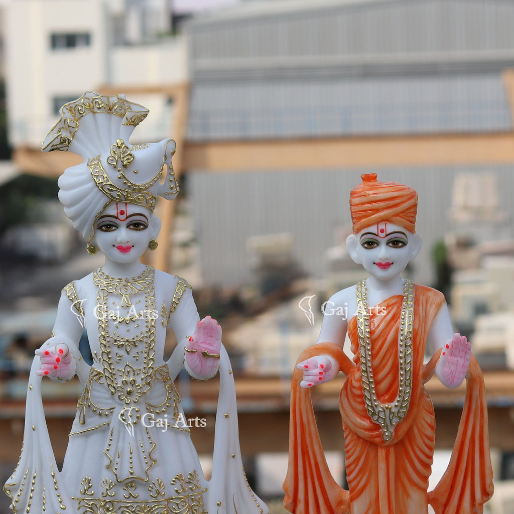 3. Swami Narayan standing in Ashirwad mudra, Swami Wear turban & Narayan Wear Crown.