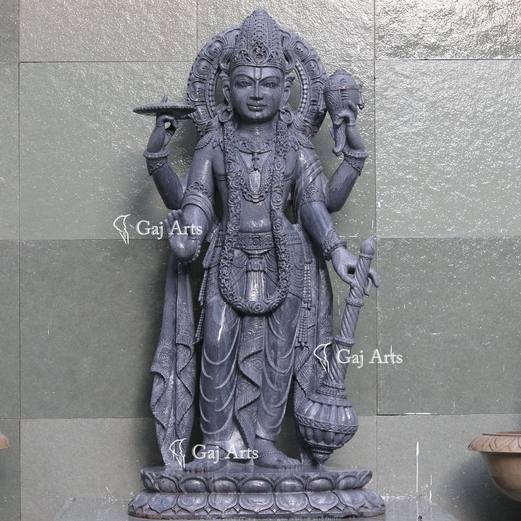 - Vishnu Ji is hand carved from one piece of Black Marble