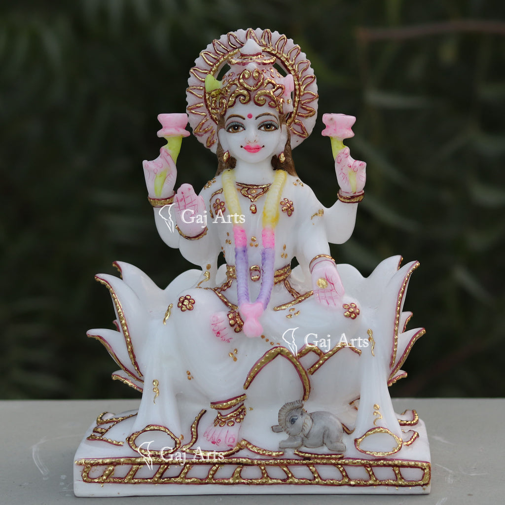 - Lakshmi Maa is hand carved from one piece of White marble Ethiopia