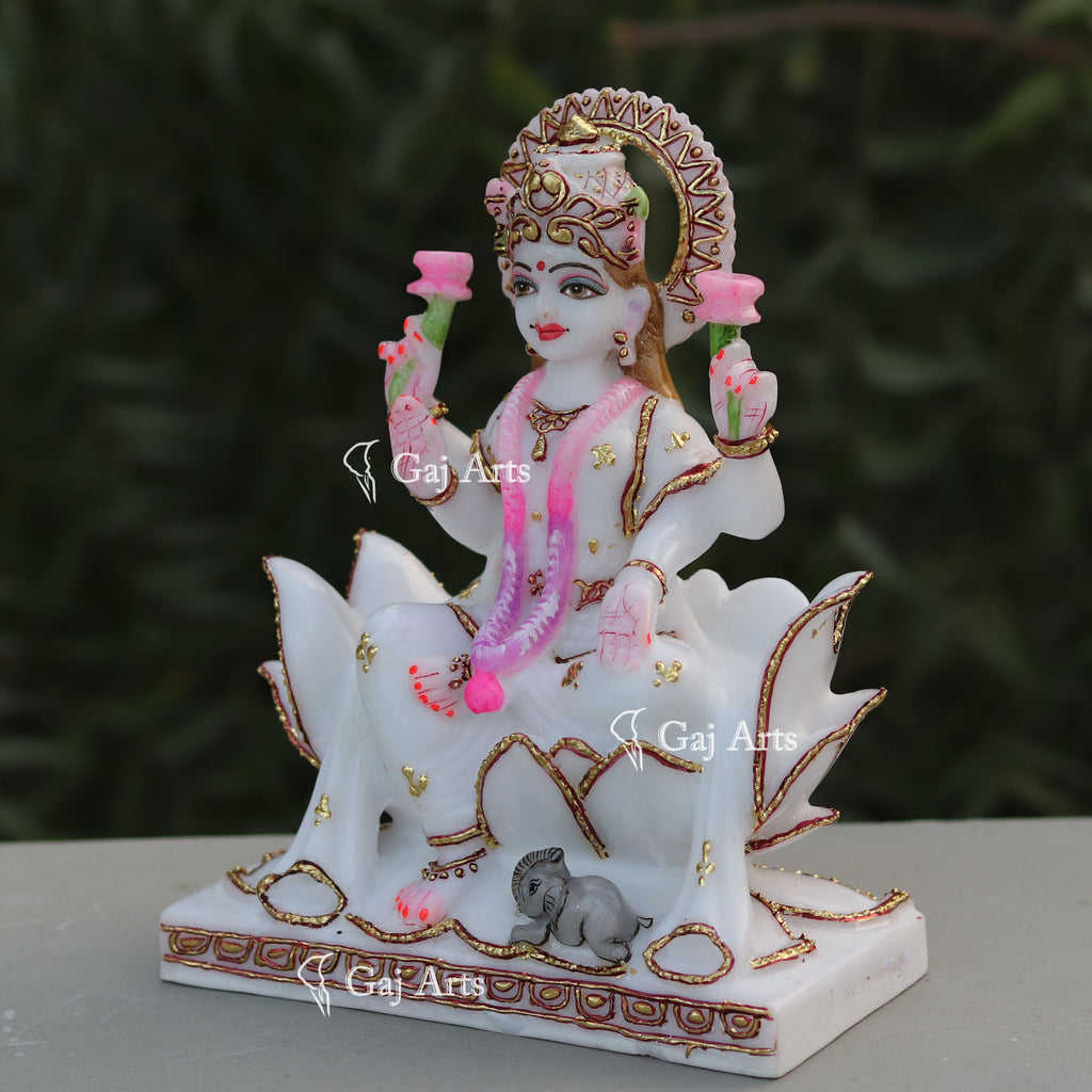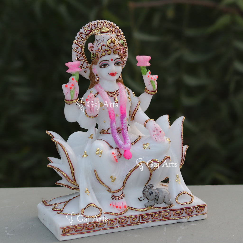 - Lakshmi Maa is hand carved from one piece of White marble Ethiopia