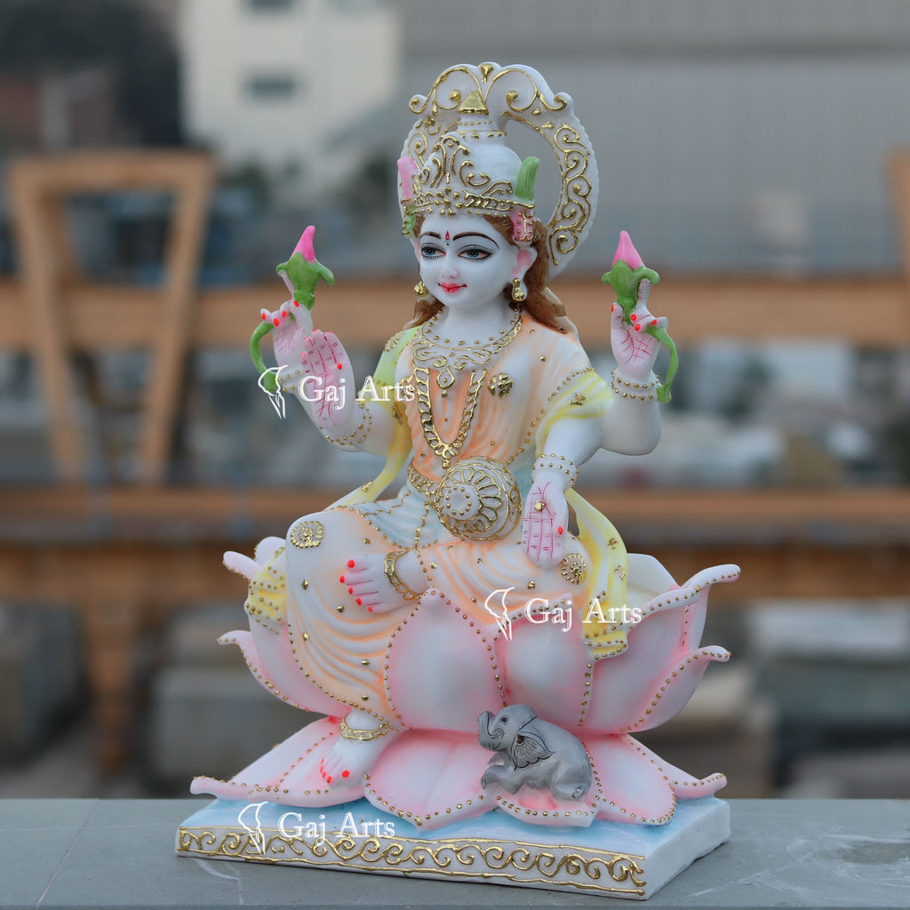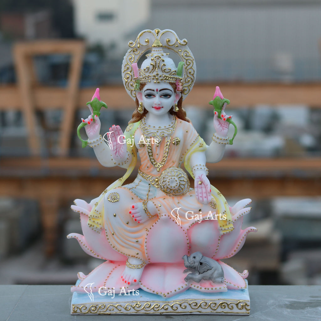 - Lakshmi Maa is hand carved from one piece of White marble Ethiopia