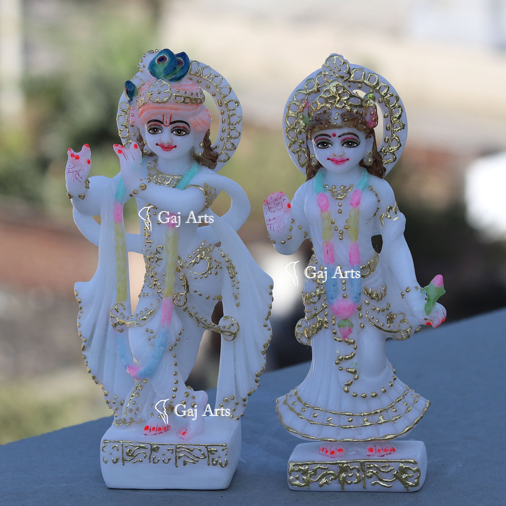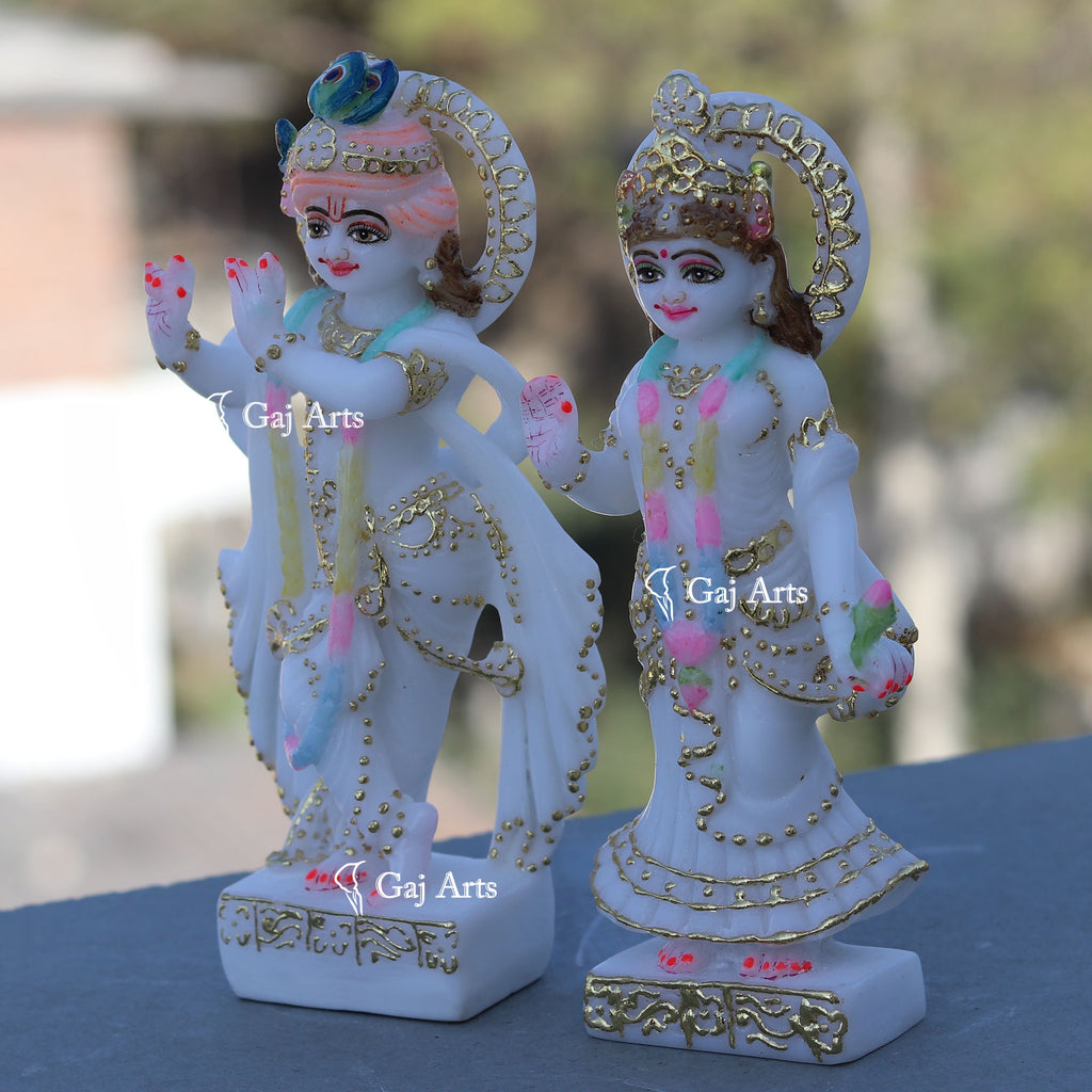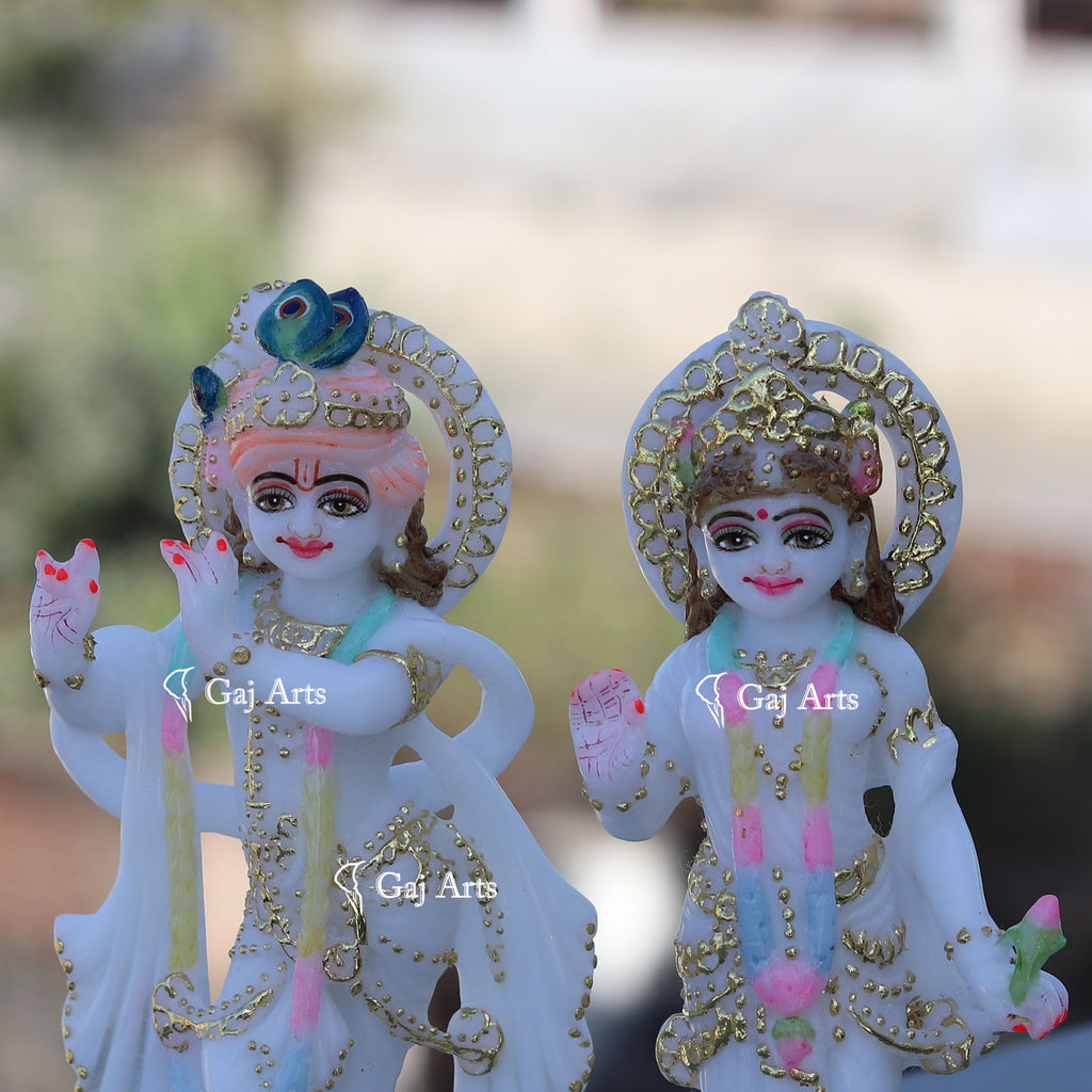 Gracefully carved in white marble, this 7-inch Radha Krishna idol reflects divine love, serenity, and timeless devotion, making it a perfect addition to home temples and spiritual décor.